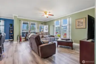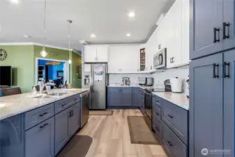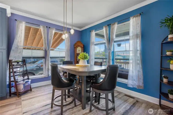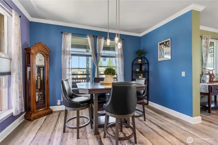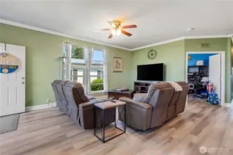 Experience the charm of this beautifully updated home in Enumclaw’s sought-after 55+ community, Mountain Villa Estates. Built in 2015 and meticulously maintained, this residence features two bedrooms, 1.75 baths, and new vinyl plank flooring throughout. The spacious great room connects seamlessly to a welcoming dining area and a remodeled kitchen, complete with custom cabinetry, quartz countertops, modern appliances, and a large island with seating. The primary suite offers a wood-accent wall, three-quarter bath, and walk-in closet, while the second bedroom includes a Murphy bed and its own walk-in closet. A versatile office space accommodates two desks, perfect for work or hobbies. Relax outdoors on the covered front porch, and enjoy the convenience of a utility room with access to a two-car carport and two storage sheds. Ideally situated near shopping, restaurants, wineries, and all the vibrant attractions of downtown Enumclaw, this home offers both comfort and an unbeatable location.