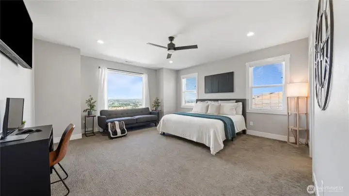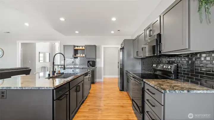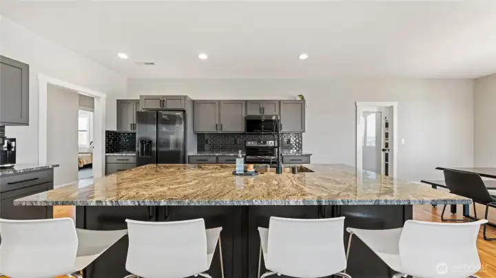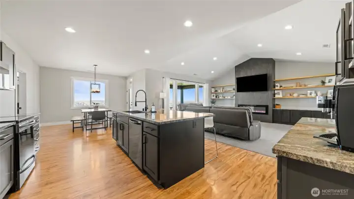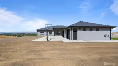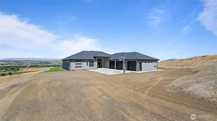 This Rambler home welcomes you with Amazing Views of Prosser. You will appreciate the Great layout of this home,2022 year built, 3 spacious bedrooms, plus office or 4th bedroom, 2 Full Baths, 2426 Sqft & private laundry room. Beautiful kitchen with large island, granite countertops & full tiled backsplash, black stainless appliances & plenty of cabinetry w/soft close doors & walk-in pantry. Spacious master suite with large walking closet. Master bath with Granite counters, Dual vanity & tub/shower with tile walls. Spacious 1250 Sqft 3 car garage that's fully finished & insulated and has it's own mini split for climate control. Man door makes way to open RV parking area with full hookups & garden shed. Sits on 10 Acres, Room for Shop & Pool! Plenty of parking spaces, nice playground area, professionally landscaped around the home w/ ugs & curbing & fenced pasture of approx. 4 acres. Located close to down town Prosser, Wineries and more. Schedule your showing today!