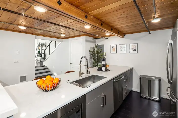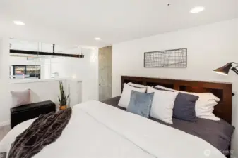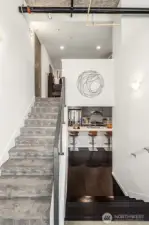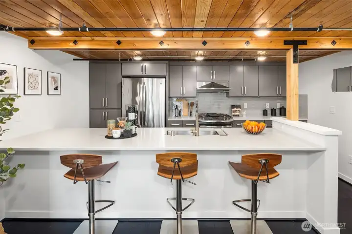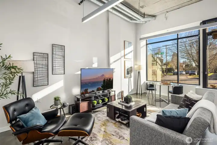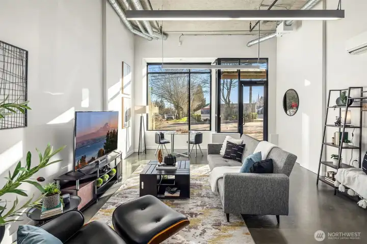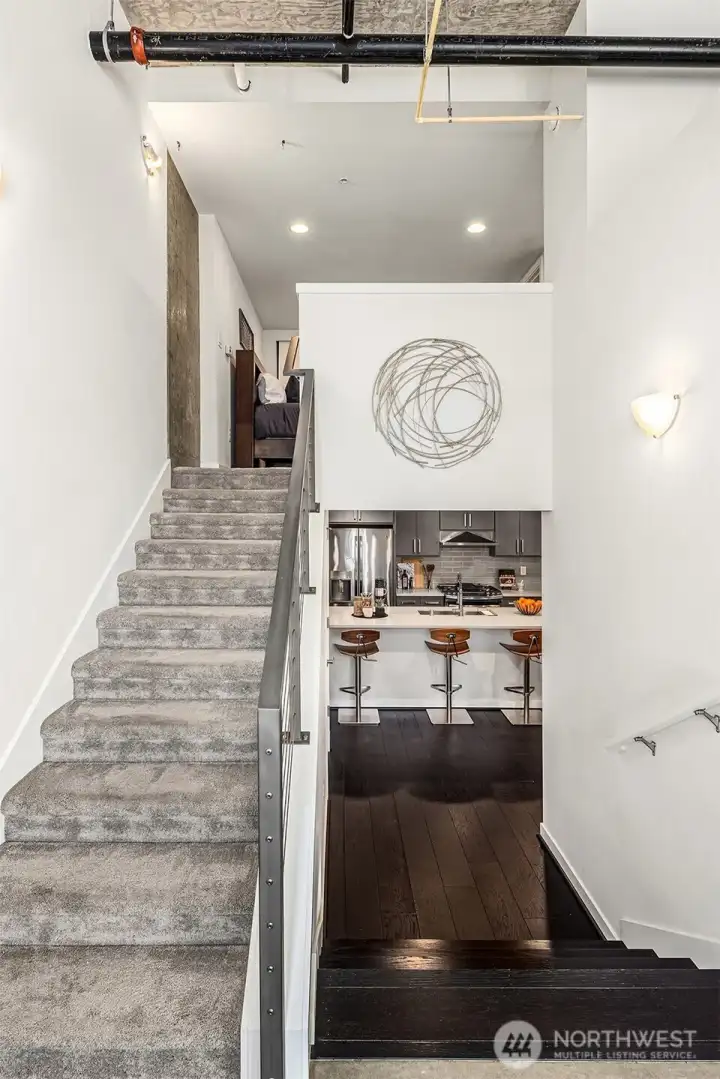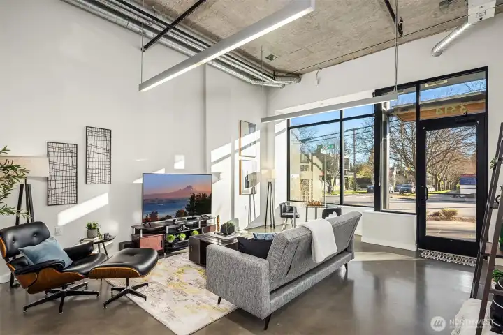 Enjoy modern living in the vibrant Ravenna community! This sleek loft offers live/work flexibility. Modern design elements include polished concrete floors, soaring ceilings and oversized windows that bask the interior with natural light. Inviting main level living space with a convenient half bath. The lower level kitchen is beautifully appointed with quartz counters, a stainless appliance package and subway tile backsplash. Flex space for office or dining. Upper level primary bedroom with ensuite bath and laundry. Secure garage parking space. Newer building with nearby transit makes commuting a breeze. Minutes to UW, Seattle Children's Hospital and shops and dining at University Village. Pre-inspected, turn-key condition. Welcome home!