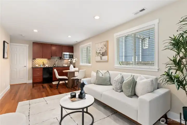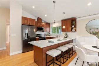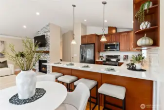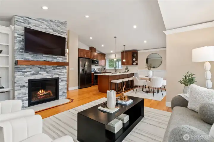Beautifully updated split-entry home, completely renovated inside-out in the last few years! This 1,800 sq ft home offers 4 bedrooms, 3 full baths with a versatile layout perfect for multi-generational living, rental income, or extended guest stays. The main level features a stunning modern kitchen with a huge island with eating space, sleek updated cabinetry, quartz-style countertops, stainless steel appliances, & contemporary finishes throughout. The spacious family room boasts vaulted ceilings & abundant natural light, gas fireplace with stone finish creating an open and inviting atmosphere that flows seamlessly into the dining area. The huge primary suite includes a beautifully updated private bath. The lower level includes a second kitchen, living area, 2 bedrooms, and full bath—ideal for a separate ADU setup, private living quarters, or bonus entertaining space. Step outside to enjoy the oversized backyard backing to a peaceful greenbelt for exceptional privacy and a serene natural backdrop. The covered, updated deck with Trex decking is perfect for year-round entertaining, morning coffee, or summer gatherings. Ample parking, refreshed exterior finishes, and thoughtful upgrades throughout make this truly move-in ready. A rare opportunity offering flexibility, privacy, and modern comfort in a beautifully upgraded home designed to fit today’s lifestyle needs. Conveniently located near shopping, schools, parks, and easy commuter access, this home truly checks all the boxes