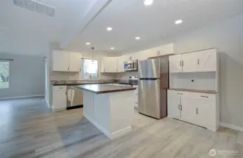 Come check out this beautifully remodeled 3-bedroom, 2-bath single-story home, perfectly situated on a corner lot in a desirable neighborhood. The home features an attached two-car garage and numerous updates throughout, including new windows, cabinets, countertops, appliances, flooring, doors, trim, and more.Enjoy year-round comfort and efficiency with a heat pump A/C system. The spacious floor plan offers a large kitchen with an island, a generous primary suite with a walk-in closet, and a beautifully updated bathroom. This home is exceptionally clean and truly move-in ready. You’ll love the huge living room with a cozy wood-burning fireplace, along with the abundance of large windows that fill the home with natural light.