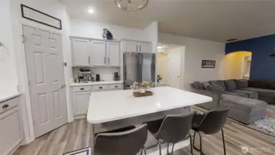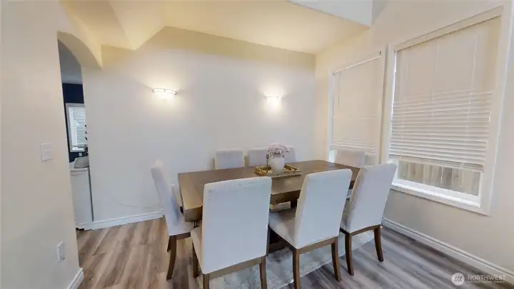 Spacious 4 bedroom plus den home in the Tumwater Hill neighborhood! Covered front porch welcomes you to this home. Inside you'll find updated laminate wood flooring throughout the main level. Soaring vaulted ceilings with upper windows in the living room and formal dining bring in plentiful natural light. Kitchen has been beautifully updated with quartz countertops and stainless steel appliances. Eat-in kitchen offers seating at the center island or in the breakfast nook area. Kitchen is open to the family room with gas fireplace. Also on the main floor you'll find a den/office and adjacent 3/4 bath, offering possibilities for guest quarters or multi-generational living. Upstairs you'll find the primary suite, along with 3 bedrooms, bathroom, utility room and bonus room area. Huge primary suite features a private 5 piece bathroom and walk-in closet. Low maintenance but functional backyard offers small lawn area plus extended patio. New roof in 2024 plus new furnace with air conditioning installed in 2023 for year round comfort!