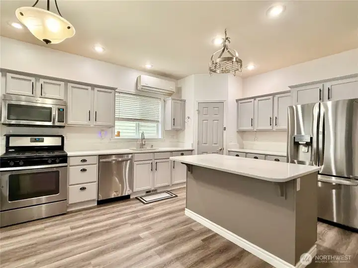 Spacious 4 bedroom plus den home in the Tumwater Hill neighborhood with new roof (2024) and new furnace with AC (2023)! Covered front porch welcomes you to this home. Inside you'll find updated laminate wood flooring throughout the main level. Soaring vaulted ceilings with upper windows in the living room and formal dining bring in plentiful natural light. Kitchen has been beautifully updated with quartz countertops and stainless steel appliances. Eat-in kitchen offers seating at the center island or in the breakfast nook area. Kitchen is open to the family room with gas fireplace. Also on the main floor you'll find a den/office and adjacent 3/4 bath, offering possibilities for guest quarters or multi-generational living. Upstairs you'll find the primary suite, along with 3 bedrooms, bathroom, utility room and bonus room area. Huge primary suite features a private 5 piece bathroom and walk-in closet. Low maintenance fenced backyard plus extended patio.