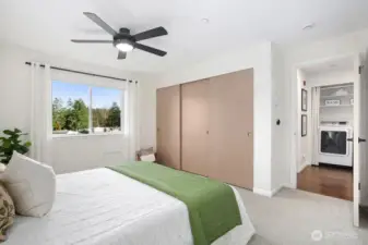 Top-floor, well-maintained 2 bed, 2 full bath condo featuring custom closet systems for optimized storage. Enjoy a quiet, private setting with rear windows overlooking a peaceful greenbelt. Walkable to nearby shopping and amenities with easy freeway access for commuting. Abundant parking includes 2 tandem garage spaces plus 2 additional exterior parking spots out front. Well-run, stable HOA with no special assessments and low monthly dues—ideal for buyer’s seeking low-maintenance living in a convenient location.