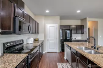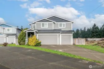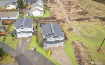 Well-designed newer construction, offered by the original owners. Built in 2016, this approximately 2,500 SqFt home sits on a 8,000 SqFt lot at the end of a quiet cul-de-sac with no neighbors to the east. Large 790 SqFt three-car garage, plus an oversized driveway provide plenty of room for parking, storage, or toys. The main floor features a functional open-concept layout connecting the living room, dining area, and kitchen—ideal for everyday living and gatherings. A true bedroom on the main level is a standout feature, perfect for guests, a home office, or multi-generational living, along with a convenient half bath. Upstairs, the spacious primary suite includes vaulted ceilings, a full five-piece ensuite bath, and an impressively large walk-in closet. Three additional bedrooms, a full bathroom, and a dedicated laundry room complete the upper level. AC Mini Splits added post construction on both levels. The fully fenced backyard includes a retaining wall, a large concrete patio, and pre-installed brackets for a future patio cover—ready for someone to make it their own. Location is a major highlight: tucked away with no through traffic, yet just minutes from Canyon Road and Military Road for easy commuting. Shopping, dining, and daily conveniences are close by, and Cross Park and the Naches Trail Preserve sit directly across the street, providing immediate access to outdoor space and walking trails. Solid home with great bones, a smart floor plan, and an excellent location!