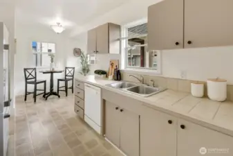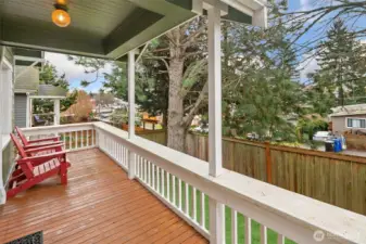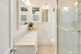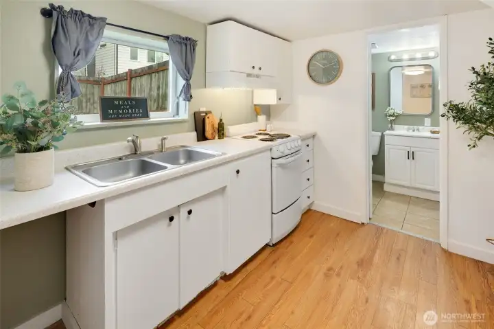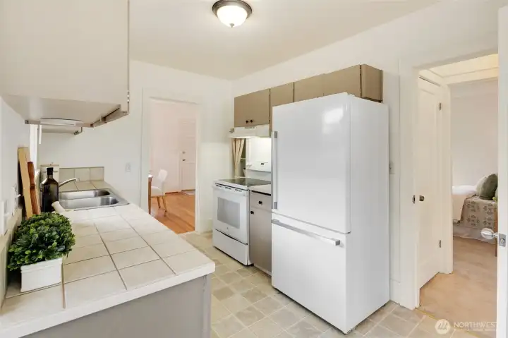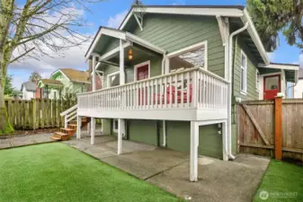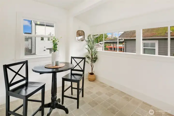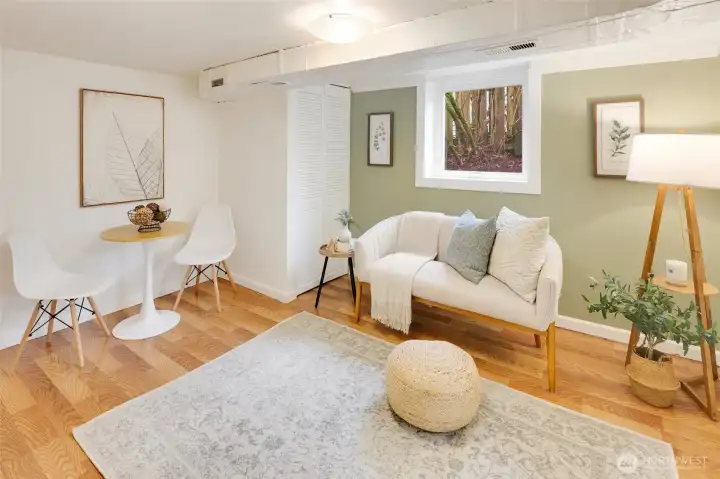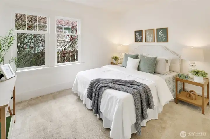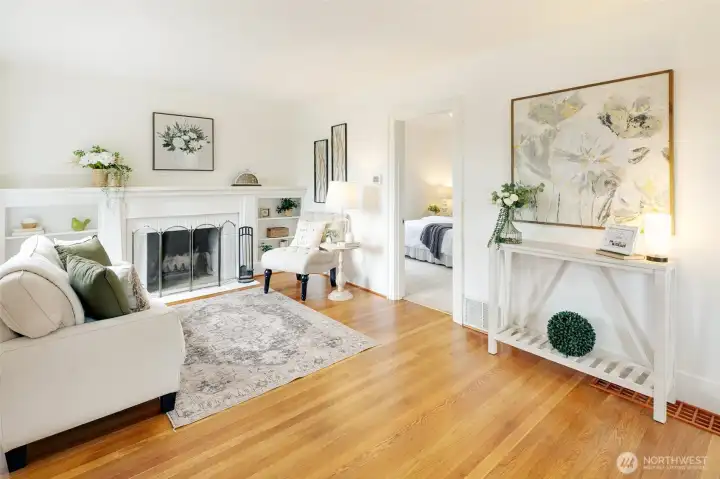 Perched above the street on a fully fenced lot, this classic Greenwood Craftsman blends timeless character with flexible living. Newly refinished hardwoods shine, complemented by oversized picture windows that flood the home with natural light and a cozy fireplace anchoring the inviting living room. A charming breakfast nook sits just off the galley kitchen, perfect for morning coffee. Two bedrooms and a full bath complete the main floor, while the lower level offers two additional bedrooms, a second bath, and a separate kitchen—ideal for guests, extended living, or rental potential. Outside, enjoy low-maintenance turf and a carport off the alley with room for multiple vehicles. Walk to cafés, restaurants, parks, and schools, with easy access to Green Lake, I-5, Hwy 99, downtown, and South Lake Union.