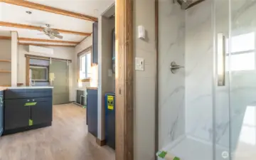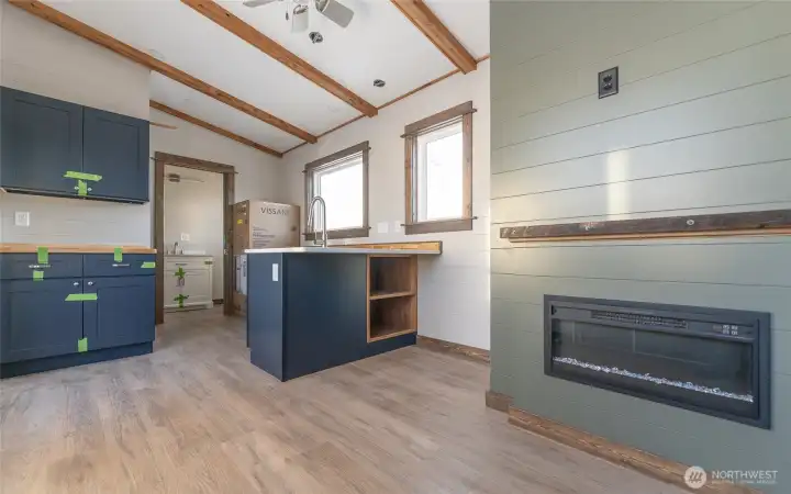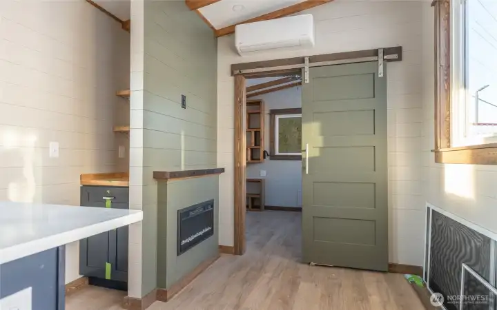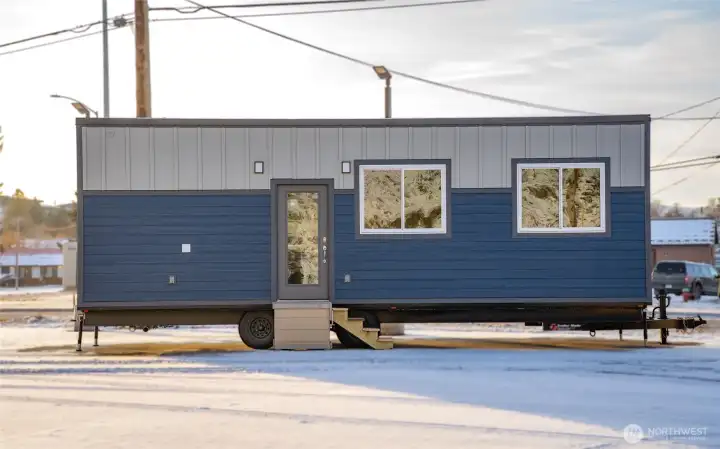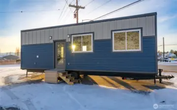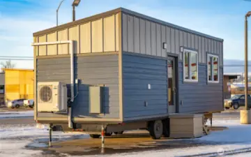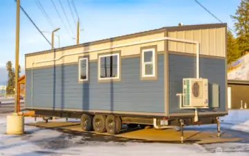 Experience big living in this custom tiny home! Built like a house & engineered for extreme climates, this home features a robust custom chassis, ZIP System sheathing, and premium closed-cell insulation for year-round comfort. Inside, enjoy luxury plank floors, custom LED lighting, a cozy fireplace, and abundant natural light from premium windows. The chef’s kitchen dazzles with custom quartz & butcher-block counters, induction cooking, and a breakfast bar. A rare find in tiny living: the bathroom boasts a full size vanity and shower. Comes with all appliances includes washer/dryer, induction cook-top, and refrigerator. Whether for an short-term rental or a minimalist dream home, this unit offers uncompromising quality with an on demand hot water and heavy-duty mini-split system. Built to last and ready for move in!
