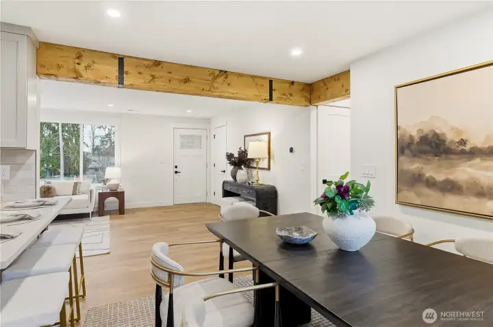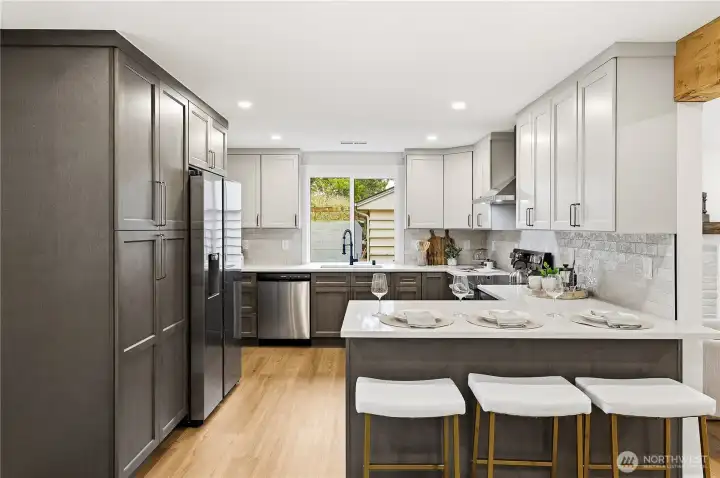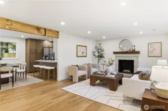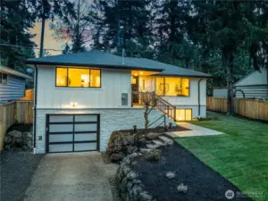 Step into an inviting home that has been completely renovated w/ thoughtful updates & timeless style, all set on a private lot in the heart of Mountlake Terrace! Set back from the road & surrounded by mature landscaping, this enticing home offers a rare sense of privacy, stylish detail & everyday convenience. Fully reimagined main level is light-filled, welcoming & truly feels BRAND NEW. This gorgeous remodel features an open layout designed for modern living, fresh paint, striking exposed beams & careful attention to every detail. Brand-new kitchen is the centerpiece of the home, showcasing an eat-in island, new countertops, beautiful cabinetry & seamless flow into the living & dining spaces - perfect for entertaining or relaxed daily living. A cozy fireplace anchors the living rm, creating a warm & inviting atmosphere. The main floor also includes a guest bedroom, a full hall bathroom, and a tranquil primary suite w/ a spacious, spa-like bath, offering a private retreat to unwind. The lower level adds exceptional versatility w/a spacious recreation room, a dedicated office space & an additional bedroom- ideal for guests, remote work or flexible living arrangements. Outside, enjoy the expansive, level backyard & large, beautiful patio surrounded by lush greenery, along with ample storage & parking. Just mins to the Mountlake Terrace Light Rail, I-5, SR 99, parks, schools, Alderwood shopping, movie theaters & dining, this home delivers comfort, style & unbeatable convenience.