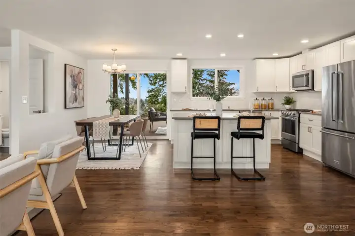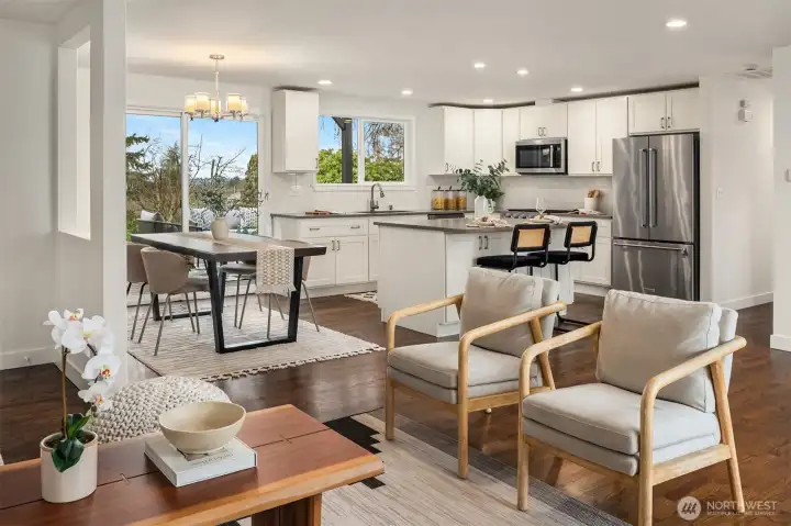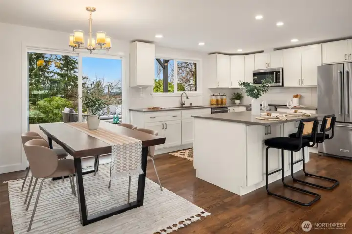 This North Tacoma stunner is a total vibe; beautifully refreshed and ready to impress. Step inside to a uniquely open layout that feels expansive, inviting, and made for entertaining. Natural light floods the home through west-facing windows that frame unreal golden hour sunsets and peaceful territorial views. The remodeled kitchen features a brand new range and opens into generous living spaces, while updated lighting and fresh interior/exterior paint add a modern, clean feel throughout. Outside, a brand-new covered deck and charming side patio offer multiple spots to gather or unwind in privacy. Whether you're hosting a crowd or enjoying a quiet evening, this home delivers the perfect mix of charm, function, and lifestyle. Bonus features: manicured yard, a quick walk to stores and restaurants, quick drive to Point Ruston and a price that’s as exciting as the home itself. Come feel it in person...this one’s special!