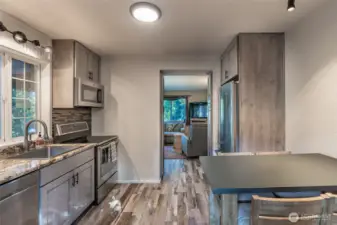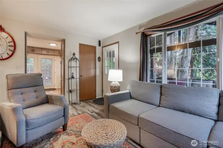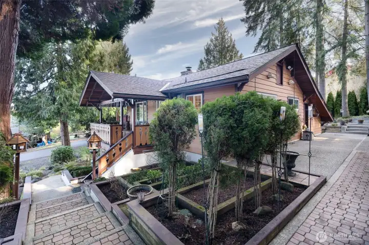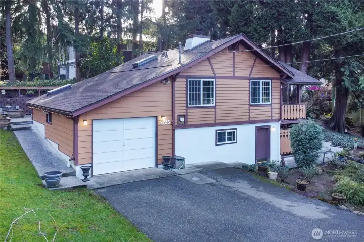 Tastefully updated move-in ready, 3-bedroom, 1.75-bath one-story home with basement on a 7,441 sq ft lot. Gorgeous covered deck leads to the main entrance - great for entertaining! Main level offers 620 sq ft with 2 bedrooms and a full bath featuring a skylight. Updated eat-in kitchen remodeled in 2020 with granite countertops, alder cabinets, stainless steel appliances, and LVP flooring. Living room includes a wood-burning fireplace, and French doors open to the backyard. Basement provides 290 sq ft of flexible space suitable as a bedroom or living area, includes a ¾ bath, and features a completely separate exterior entrance—ideal for guests or additional living options. 310 sq ft garage with ample storage. Vinyl double paned windows and refurbished wall heaters keep the energy bills low. Roof replaced in 2023 and electrical system updated. Private backyard with raised flower beds, zen garden, and stamped concrete patio. Generous lot offers potential for a second home or additional dwelling (buyer to verify). Convenient Seattle location with versatile living and future opportunity.