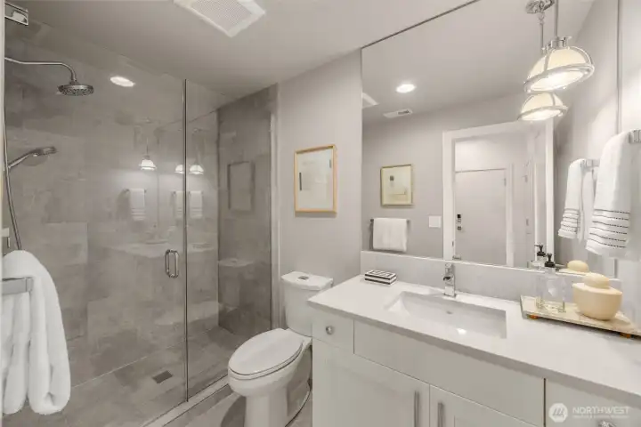 Experience the best of Downtown Kirkland living just steps from Google, Urban, QFC, restaurants, shops, & waterfront of Lake Washington. This stunning 4-bedroom, 3.25-bath detached 3-story home perfectly blends modern urban style w/ suburban comfort & features a private rooftop deck w/ breathtaking Lake Washington views — ideal for entertaining or unwinding at sunset. The thoughtfully designed interior showcases a gourmet kitchen w/ quartz countertops, premium KitchenAid appliances, fresh interior paint, & brand-new engineered hardwood floors. A well-managed HOA w/ dues covering water/sewer, the master insurance policy including earthquake insurance, & future replacement of major exterior components including roof/siding. Award-winning Lake Washington SD Schools!
