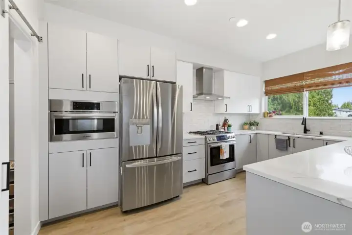 Step into this spacious, light-filled, west-facing home where modern design meets everyday functionality. Built in 2024 and nearly new, this home features a thoughtfully designed kitchen with stainless steel appliances, soft-close cabinetry, 3cm quartz countertops, a gas range, walk-in pantry, and abundant storage. The entry-level bedroom and bathroom offer flexible use as a private guest suite or dedicated home office, complete with CAT6 wiring for fast, reliable internet. Unwind in the living room by the electric fireplace and oversize windows or retreat to the generous primary suite featuring a walk-in closet and en-suite bath. Enjoy year-round comfort with central heating and A/C. The two-car garage is fully equipped with a smart garage door opener, EV charger, and overhead storage. Prime location across from Martha Lake, ideal for outdoor enthusiasts, just minutes to shopping, dining, and entertainment, with walking access to public transit and the Swift Orange Line or Ash Way Park & Ride (also Amazon & Meta shuttle routes). A perfect blend of natural surroundings and urban convenience, this is a home you’ll love coming back to.