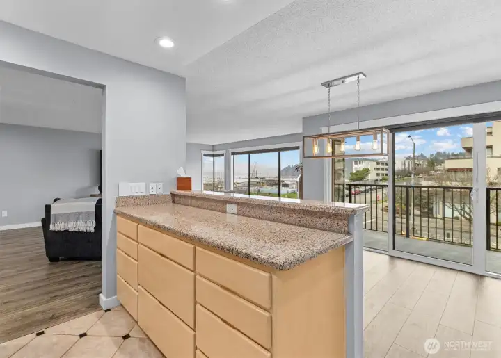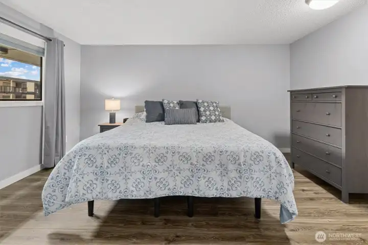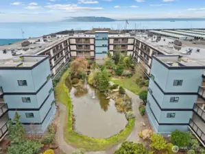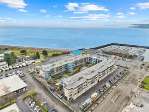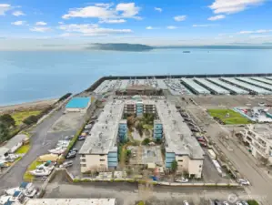 Beautiful Waterfront living Downtown Des Moines spacious condominium unit with extended view of the Marina & Downtown district. 2 Bedrooms, 2 Bath with bonus laundry-utility room. Large living space, Dining room and open kitchen space. Multiple nook areas for entertaining, dry bar and wet bar. New slider to new deck and rail system. Primary suite with newly updated bath, walk in closet and barn door. Laundry room features new washer & dryer, storage cabinets and counter space. Lovely kitchen with granite counter tops, new refrigerator and dishwasher. Additional storage closets in hallway. Designated garage parking with 9' x 16' storage locker. Experience true PNW lifestyle living with access to restaurants, retail, waterfront parks, tree-lined sidewalks, sunsets, sailboat races, sea-life rescue & rehabilitation. The courtyard features an outdoor pool, spa, cabana, BBQ area and immaculate mature landscaping. Exterior renovations include walkway surfacing, lighting, soffits, rebuilt stairwells, new fascias around the building, new sliding glass doors, chimney surrounds, new infills above garage doors and new parking lot lighting. Roof to be completed 2026.