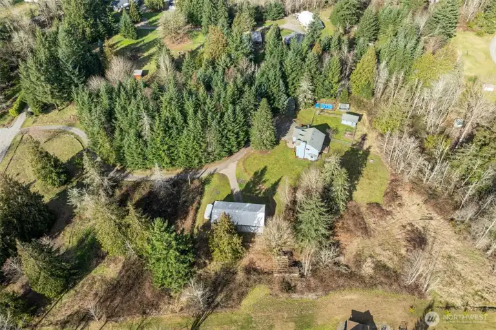 Tucked away in the peaceful countryside, yet just minutes from Highway 410 and everyday conveniences, this special 5-acre property offers the perfect blend of privacy and accessibility. Surrounded by towering trees and natural beauty, it’s an ideal setting for your 4 legged pets, organic farming, or simply enjoying wide open space and fresh air. The beautifully maintained two-story home has been thoughtfully updated and is move-in ready. Inside, you’ll find high ceilings though out the main floor and upstairs there are vaulted ceilings in every bedroom, creating a light and airy feel throughout. The spacious primary suite is a true retreat, featuring its own cozy fireplace, a luxurious bathroom, and a walk-in closet. Outside, the possibilities are endless. A large 30'x60' detached garage provides ample space for equipment, hobbies, or storage, while the land itself offers room to roam, grow, and create your dream rural lifestyle. The home is serviced by well water, with a Kinetico Reverse Osmosis water treatment system, adding to its self-sufficient appeal. It also has a 16 KW Generac whole house propane generator! And is in a no RTA tax area for vehicle licensing! Conveniently located near Buckley and Bonney Lake, and just about 45 minutes from Crystal Mountain Resort, you’ll have easy access to skiing, hiking, camping, and year-round recreation. If you’ve been dreaming of space, privacy, and a connection to nature—without sacrificing convenience—this is the one!