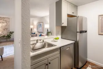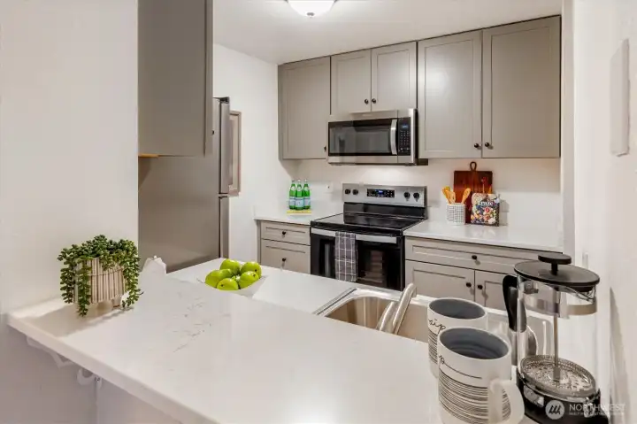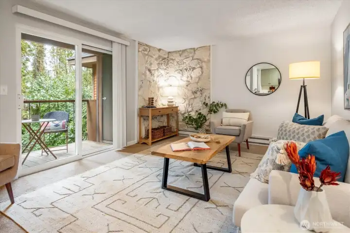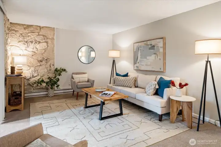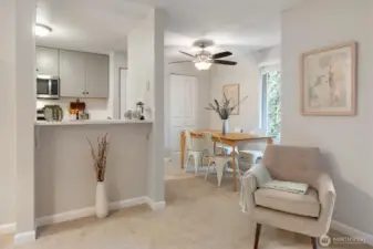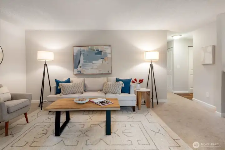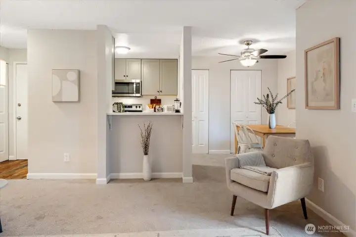 Welcome to this beautifully renovated home featuring a brand-new kitchen with a breakfast bar that opens seamlessly to the living and dining areas—ideal for entertaining. Step outside to a private balcony, perfect for enjoying fresh air and morning coffee. Tucked down the hall away from the main living spaces, you’ll find an updated bath, a spacious primary bedroom with a walk-in closet, and a second bedroom that completes the comfortable, well-designed floor plan. Additional highlights include in-unit washer and dryer, a dedicated parking space, new carpet and fresh paint throughout, and access to a swimming pool. Enjoy an easy commuter location close to the Interurban Trail, Lake Ballinger, Costco, and a variety of dining options.