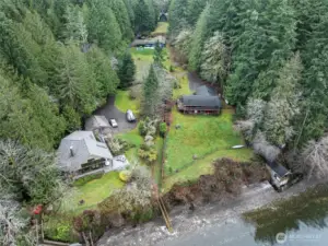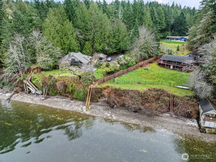 Rare waterfront opportunity offering an increasingly hard-to-find combination of level acreage, single-level living, and private beach access. Come check out this thoughtfully maintained 3 bed/1.5 bath rambler on a level .7-acre setting with sweeping Hood Canal and mountain views—where quiet mornings, beach walks, and sunset evenings feel timeless. Enjoy 12 ft of deeded private beachfront with tideland rights, accessed via a rare flag-shaped parcel with a private beach corridor and recently repaired private stairs. Backing to Scenic Beach State Park for permanent open space and trail access. Thoughtfully maintained with numerous updates, including a brand-new HVAC system, 50-year roof (2014), wood-burning fireplace, hot tub, 2-car garage plus covered carport, enclosed gardens, firepit and generous grounds for ample parking, ideal for gatherings, games, and making lasting memories.
