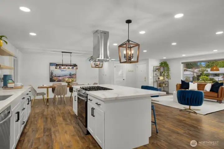 Beautifully updated rambler in the desirable Maplewood Heights community of East Renton Highlands. This 3-bedroom, 2.25-bath, 1,800-square-foot single-level home welcomes you with an open, light-filled floor plan featuring luxury laminate flooring throughout. The updated kitchen offers a functional layout with a gas stove, stainless steel appliances, quartz countertops, and a large island—ideal for everyday living and entertaining. Two separate living spaces provide flexibility for relaxing, hosting, or working from home. Additional updates include a newer furnace (2022). Situated on a .25-acre lot, the private, fenced, and spacious backyard offers a peaceful, park-like setting—perfect for entertaining, gardening, or simply relaxing. A commuter’s dream with quick access to major highways for easy travel to Seattle and Eastside tech hubs. Pre-inspected. Welcome Home!