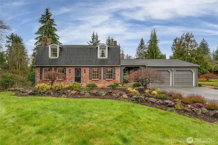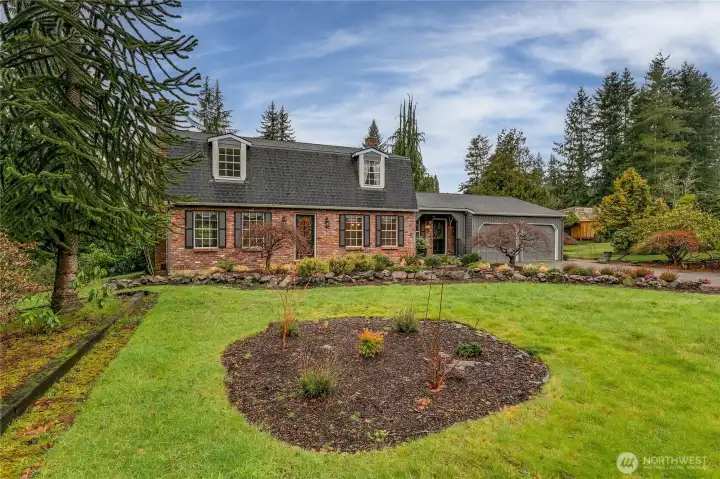 Welcome to this charming French Country retreat, blending timeless character w/ modern comforts, all nestled on a private 1.75 acre setting. Offering over 2300 sf of living space w/ 3 bdrms, 2.5 bths, this beautifully updated home provides exceptional privacy & classic charm in every room. The granite kitchen features updated appliances, abundance of cabinets & granite countertops & a cozy eating nook plus stunning mixed-width oak plank flooring. Spacious living & dining + separate music room, all filled with natural light, creating warm & inviting gathering spaces. Upstairs, the Primary Suite includes its own 3/4 bath & fireplace while 2 additional generously sized guest bedrooms & a full bath complete this upper level. Special features include leaded glass doors, 3 gorgeous brick fireplaces, each w/ custom mantels & tile flooring in all the baths. The 22 x 15 covered brick patio is ideal for entertaining or relaxing year round while enjoying the surrounding nature. Expansive lawn & garden areas showcase mature landscaping, small decorative pond & an abundance of flowering plants, all designed to maximize your privacy. Even a well on the property for landscaping. Attached 2 car garage offers additional workspace & long private driveway provides parking for 6-8 vehicles. So close to shopping and freeway access. This is truly Country Living at its very finest!