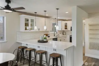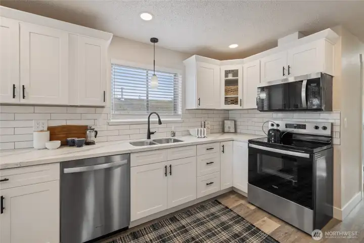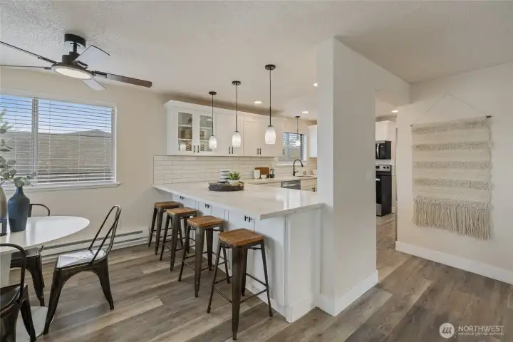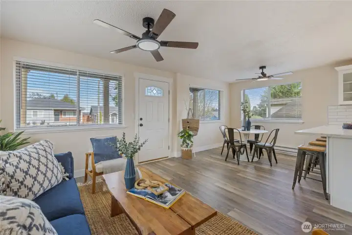 Tastefully renovated and truly move-in ready, this Tacoma residence showcases a seamless combination of modern updates and quality workmanship. Exterior improvements include a new roof, select newer siding, new gutters, fresh interior and exterior paint, new entry doors, and a detached two-car garage with new doors and a backyard access gate providing additional RV parking. Enjoy newly constructed outdoor living spaces with a welcoming front porch and rear deck. Inside, the spacious chef’s kitchen impresses with quartz countertops, an eat-up bar, new stainless steel appliances, and a timeless subway tile backsplash. The home has been extensively updated with new flooring, interior doors, millwork, and efficient heating throughout. Two generously sized bedrooms with ample closet space are located on the main level, along with a fully remodeled bathroom featuring a new tub, vanity, toilet, and tiled shower surround. A new hot water heater adds peace of mind. Upstairs offers two additional bedrooms and potential for a future half bath, with rough-in plumbing already installed. This thoughtfully updated home offers turnkey living with flexibility for future expansion. Close access schools & parks, I-5, Sounder Train and South Tacoma amenities.