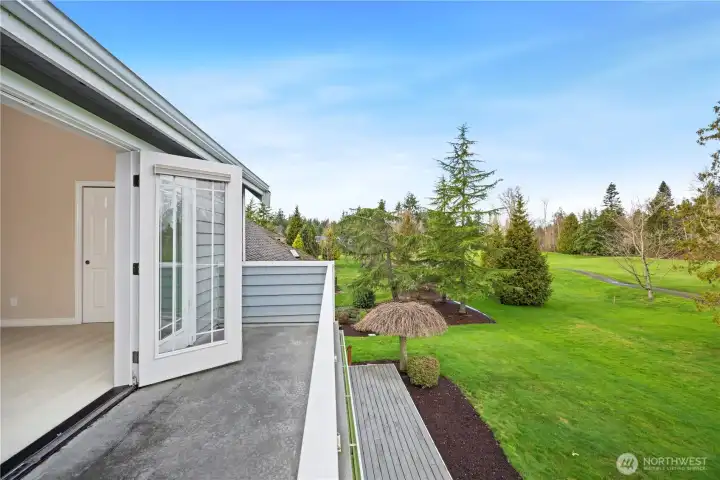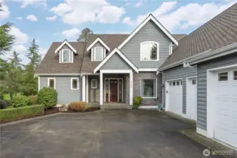 Nestled within the gated Prestwick Village community of Semiahmoo, this east-facing luxury residence is ideally positioned along the 10th fairway, offering 130 feet of golf course frontage and tranquil green views. Semiahmoo is renowned for its championship golf course designed by golfing legend Arnold Palmer, along with its private marina, scenic walking trails, and refined coastal resort setting along the Salish Sea. This home was custom-built for main-level living, featuring a primary bedroom on the main floor that provides a peaceful retreat complete with a fully remodeled bathroom. Timeless finishes are showcased throughout, including maple floors, granite kitchen countertops, and a tile backsplash. The upper level offers three additional bedrooms plus a spacious bonus room, with the larger upstairs bedroom opening to a private view deck overlooking the golf course. A sunroom fills the home with abundant natural light year-round. Impeccably maintained and move-in ready, the home has been freshly painted and professionally cleaned, including carpets and windows. Your opportunity to own a luxury home in one of the Pacific Northwest’s most desirable private communities awaits!