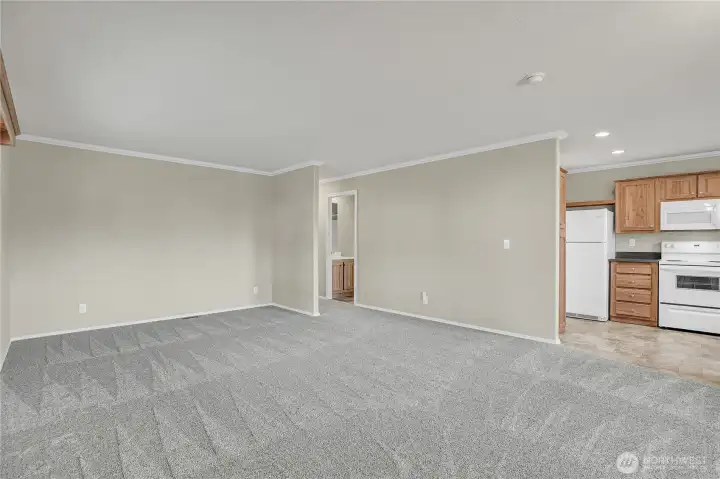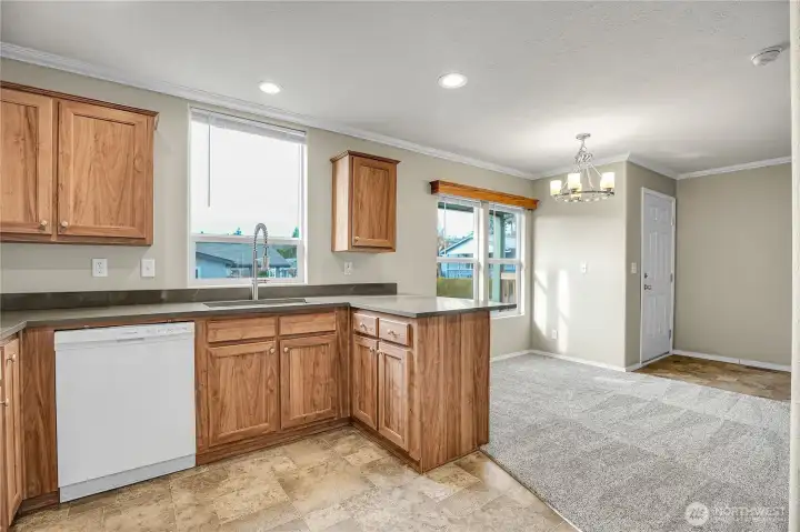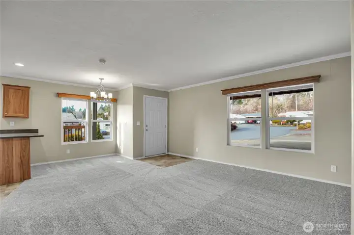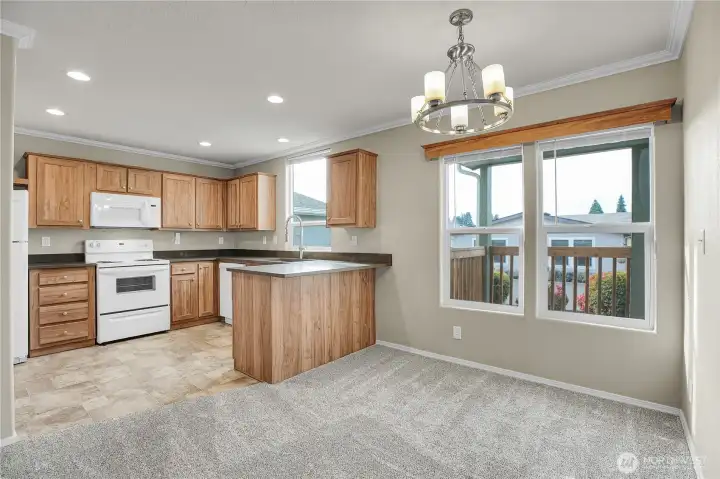 Updated 2018 manufactured home, the newest in the Oak Haven community, in this desirable over 55+ park. With 1,036 sq ft, this 2 bedroom, 2 bath home offers a modern, move-in ready feel with thoughtful updates. Recent improvements include quartz countertops in the kitchen and both bathrooms, new modern sinks and faucets, brand new carpet, cordless blinds, new LED lighting throughout most of the home and a brand new HVAC system installed August 2025. Washer and dryer included along with an attached carport and storage shed. The exterior has been refreshed with new bark dust and a step-stone paver walkway for added curb appeal. A functional floor plan and comfortable living spaces make this home easy to enjoy. Current space rent is $834.75. Two small pets allowed (up to 30 lbs, registration required). RV parking may be available for an additional monthly fee. Seller is a licensed real estate broker in Washington State.
