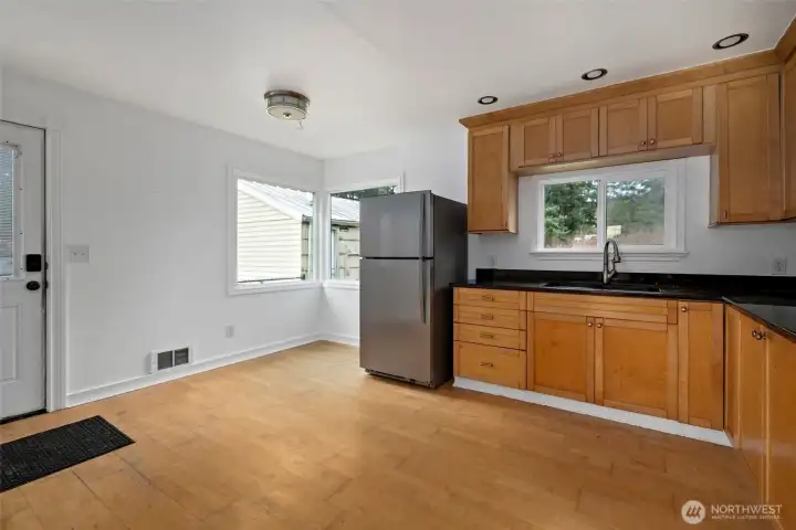 Owners plans have changed! Come take advantage of their change of plans on this charming cottage style two bedroom home on Large HALF ACRE lot. Plenty of room for all the garden you can handle, and leftover room for fenced area for kids playgrounds or large pets. Kitchen and bathroom have had nice upgrades and wood burning insert in fireplace will keep you toasty. Metal roof for low key maintenance. Check city for allowable uses on this rare location! Vacant and ready for your ideas.