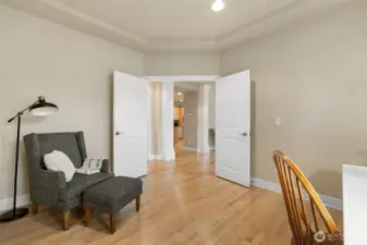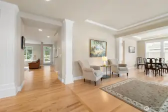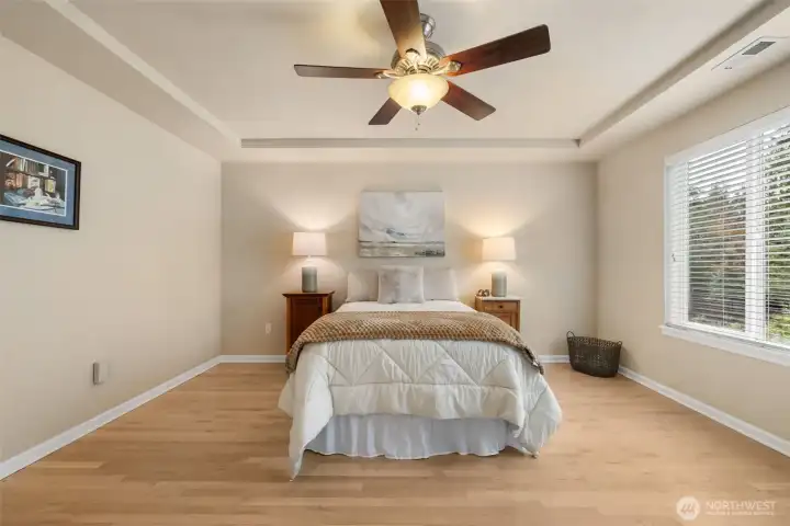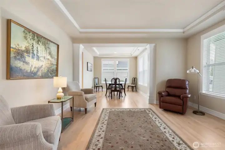 This beautifully maintained home in McCormick Woods blends elegance, function, and comfort in an incredible setting. You'll enjoy living here with a golf course, trails, parks and playgrounds nearby, in a lovely walking friendly community. The main floor features formal living and dining spaces, a cozy family room with gas fireplace, and an office—perfect for work or study. The gourmet kitchen features granite counters, a gas cooktop island, and raised-panel maple cabinets, all complemented by gorgeous hardwood floors and 9-foot ceilings. Upstairs, you’ll find five bedrooms with more hardwood floors throughout, including a spacious primary bedroom with a view and sounds of the waterfall feature below. You'll have plenty of options to have the large 5th bedroom as an extra office, studio, music room, or whatever you'd need or like! Step out back to your oversized patio surrounded by an impeccably maintained landscaped backyard—ideal for entertaining, with an amazing park like setting and evening lighting on the trees and waterfall. Enjoy summer BBQs, or relaxing mornings with coffee in this tranquil setting. The large offset garage enhances curb appeal with extra room for a shop or possibly even golf cart parking! Just minutes from Hwy 3 and Hwy 16, and a short drive to the Bremerton and Southworth to Seattle ferries, this move-in ready home offers convenience and tranquility in one package. Schedule your showing today and fall in love with this remarkable home.