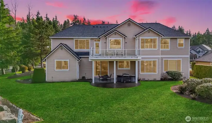 This impressive 3,840 sq ft home is ideal for multigenerational living inside the desirable gated community of Washington National. With 4 traditional bedrooms, 1 bonus room, plus 1 additional room with a closet, the layout offers incredible versatility for extended household needs, guest accommodations, home offices, or private living quarters. All 4 of the bedrooms feature direct bathroom access, providing comfort and privacy that makes shared living seamless. The open-concept design creates natural gathering spaces, highlighted by vaulted ceilings and beautiful cherry hardwood flooring that add warmth and elegance throughout the main living areas. Newer furnace and a kitchen featuring slab granite countertops, stainless steel appliances, custom cabinetry, and a walk-in pantry. Upstairs, the primary suite includes a private deck, jetted soaking tub, and spacious walk-in closet. Mature landscaping and a tranquil water feature enhance the inviting outdoor setting.