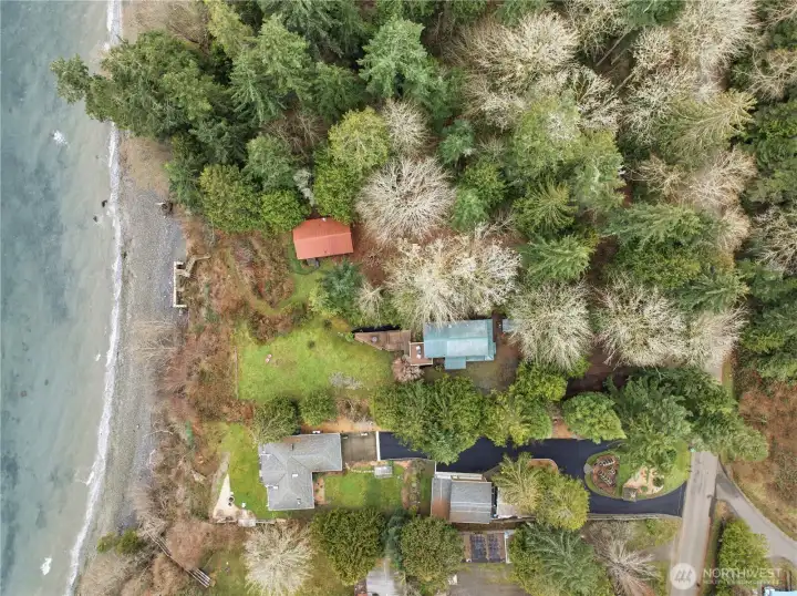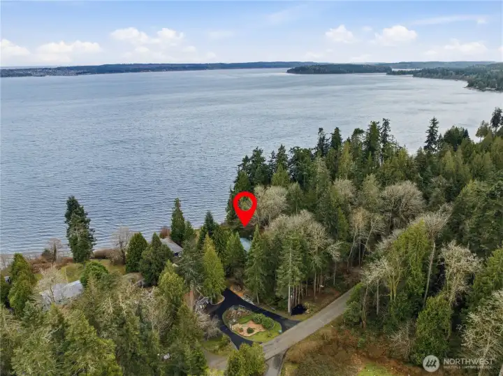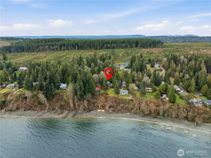 Located on a quiet, private street this enchanting waterfront home offers views that overlook the Hood Canal, Cascade Mountains, and Glacier Peak. Set on a tranquil and very peaceful .65-acre lot with 75 feet of high-bank waterfront, this private retreat not only offers gorgeous water and mountain views, but also serenity with nature on display. This thoughtfully designed home offers a versatile floor plan with vaulted ceilings on both levels, refined millwork, and an abundance of natural light. As you enter this charming home, the entry level includes a very large spacious bedroom with deck access, 3/4 bath, laundry area, attached oversized 2 car garage and even a convenient dog wash station for your pet to enjoy a spa day! Upstairs is an open-concept living, dining, and kitchen space, and a second bedroom suite with full bath complete with large, deep soaking tub. Enjoy year-round comfort with a heat pump providing efficient heating and cooling air conditioning. Plenty of space to park your boat and RV parking with water and power hookups perfect for visiting guests. Three expansive view decks— for entertaining, relaxing, or simply soaking in the ever-changing waterfront scenery. With no HOA or CC&Rs, this property offers outstanding flexibility - ideal as a full-time cozy residence, weekend getaway retreat, or an income-generating vacation rental. Just minutes away from dining, an 18-hole golf course, scenic hiking trails, and the resort marina.