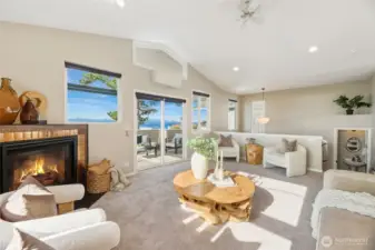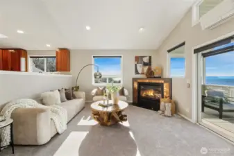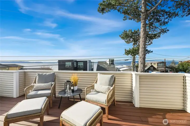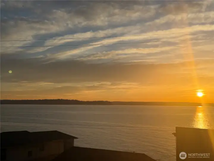 Sit back and take in sweeping views of sea and sky from this coveted Beach Drive home with breathtaking Sound and Olympic Mountain vistas. A true condo alternative, this 3 bed / 2.5 bath residence features a PRIVATE ELEVATOR servicing all levels and a reverse floor plan designed to maximize natural light and scenery. The light-filled upper level offers an inviting space to relax and enjoy vibrant sunsets, along with an open kitchen and dining concept ideal for entertaining. There is a gas fireplace to keep you warm in cooler months and A/C for Summer time. Step onto the expansive deck for 180-degree views stretching from Lincoln Park to Bainbridge Island. Ideal for watching ferries, marine life or the sun gently slip behind the mountains. The main level hosts three bedrooms and two baths, including a serene Primary Suite with walk-in closet, gas fireplace, and private deck access. Exceptionally well cared for, this home offers low-maintenance living with no HOA. Additional highlights include a two-car garage with storage and a fantastic location near Alki, Lincoln Park, and The Junction. Become part of this incredible coastal community!