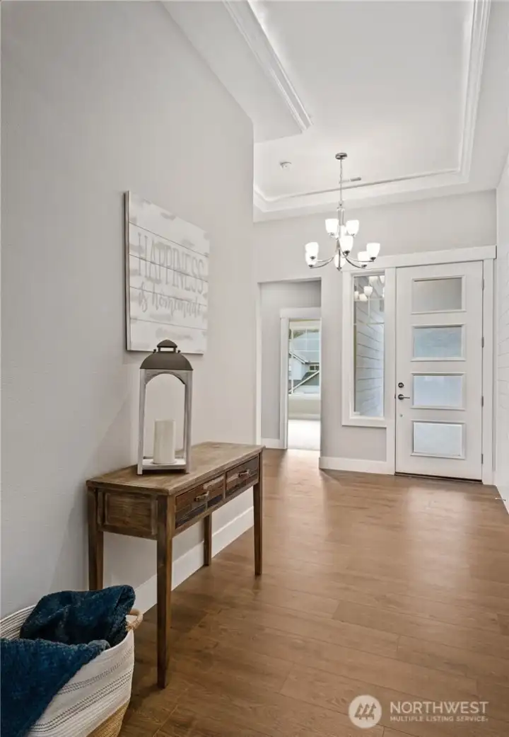 Set among mature trees in desirable Edgewood, this newer luxury home community offers a refined blend of privacy, tranquility, and modern design. Situated on its own spacious lot, this 2,367 square foot modern craftsman home showcases thoughtful craftsmanship and upscale finishes throughout. As you enter into the foyer and then into the living area you'll enjoy custom tray ceilings and intergraded ambient LED cove lighting, crisp white millwork, high vaulted ceilings and a gas fireplace with full-height stone create a warm yet sophisticated ambiance. The chef’s kitchen features quartz countertops, soft-close cabinetry, stainless steel appliances including industrial refrigerator, dual oven and a built-in beverage fridge—perfect for entertaining. The home offers three large bedrooms and 2.5 baths, including a spacious primary suite with an elegant private bath designed as a relaxing retreat with freestanding tub. Enjoy year-round comfort with a newer AC system, along with covered patios equipped with a gas fireplace and TV outlet for seamless indoor-outdoor living which includes a gazebo. Additional highlights include a spacious three-car garage, full front and back landscaping and numerous refined details throughout. A must-see home offering luxury, comfort, and timeless appeal.