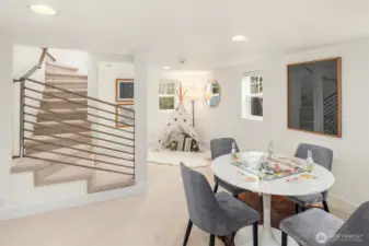 Introducing the Phinney Craftsman you’ve been waiting for! Originally built in 1909 and thoughtfully rebuilt in 2012, this home delivers all the character you love without the old-house headaches you don’t. South-facing and filled with natural light, the front entrance welcomes you home with a glimpse of the Cascade Mountains and Green Lake, practically beckoning you down the hill for your daily loop. Tall ceilings and rich engineered hickory hardwoods create a warm, inviting feel throughout the main level, which offers an effortless flow while still maintaining distinct, intentional spaces. A proper dining area transitions seamlessly into the kitchen featuring marble countertops, abundant cabinetry, and an eat-in bar. Two bedrooms and a ¾ bath with double sinks complete the main floor. The fully finished lower level offers none of the typical “basement” feel, thanks to continued generous ceiling height & a rec room with two distinct spaces, two additional bedrooms, a full bath, dedicated laundry room & an EV-ready garage for parking and storage. The fully fenced, low-maintenance backyard is ready for happy pups & outdoor gatherings. Picture morning strolls around Green Lake or through Woodland Park, popping up to The Ridge for coffee or happy hour, and enjoying all that the Phinney Neighborhood Association has to offer, with its community center just two blocks away. An easy commute downtown via bike, bus, or car, with quick access to 99 & I-5, keeps everything within reach.