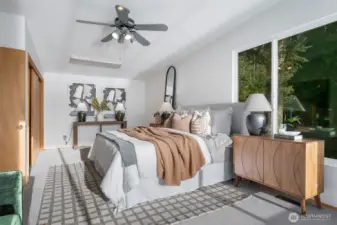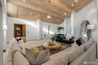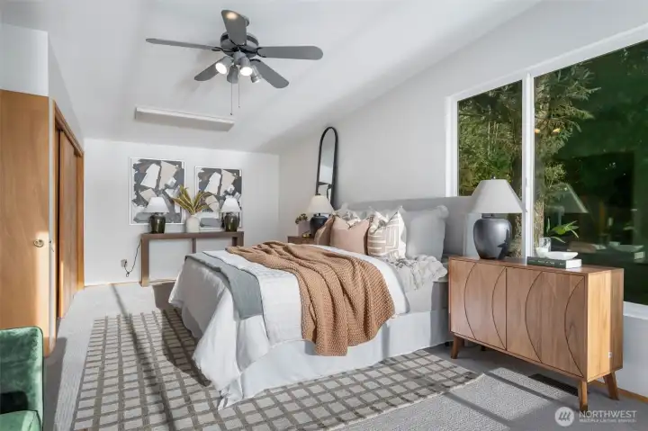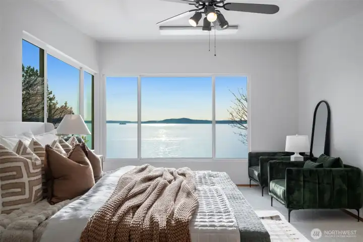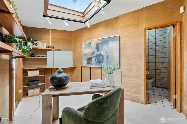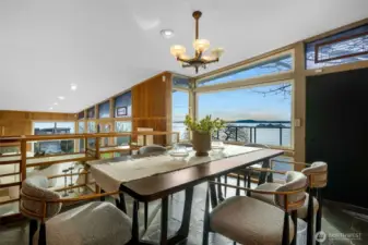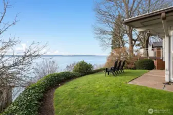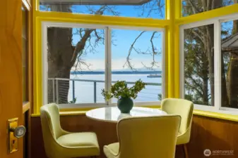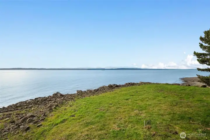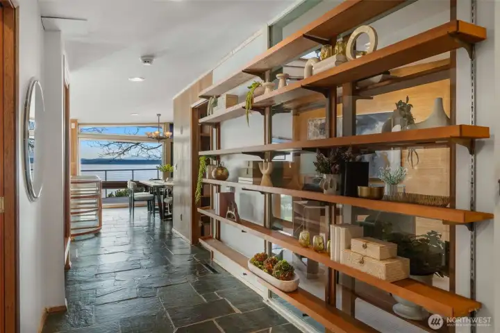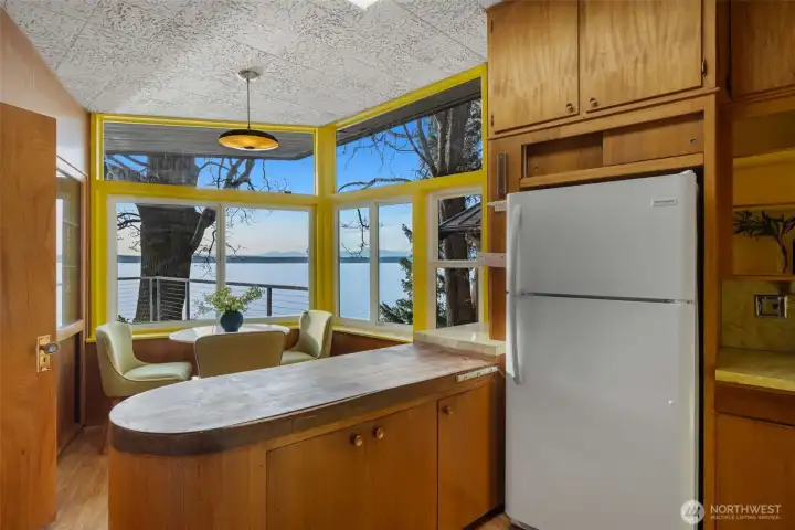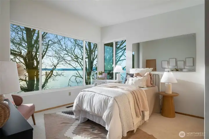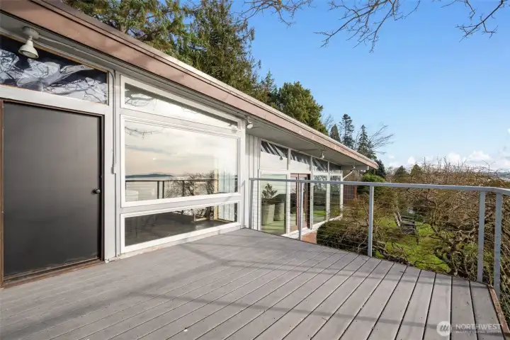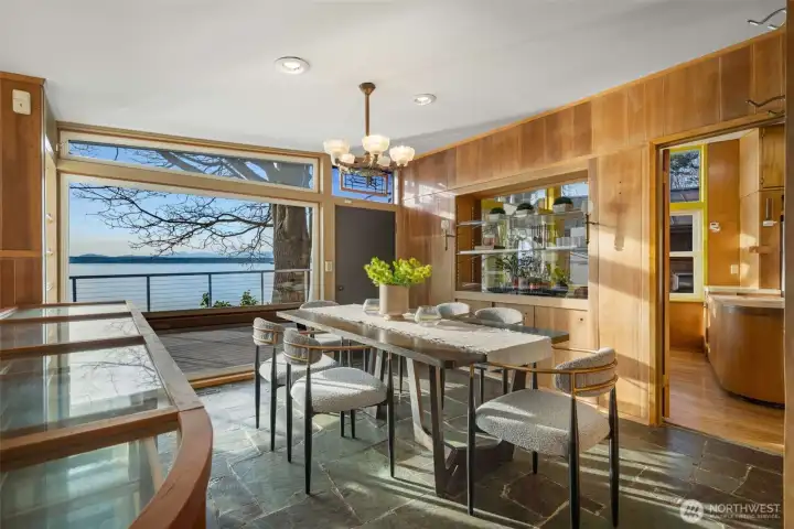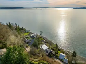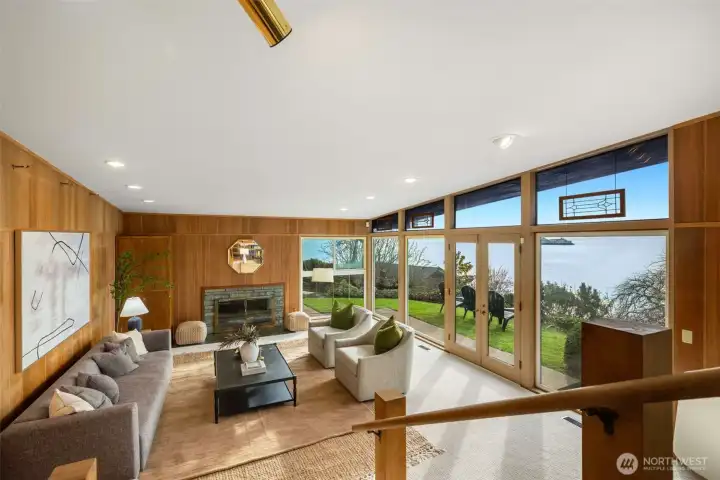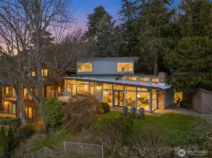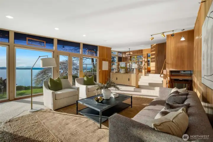 Built in 1955, this midcentury modern waterfront home on Perkins Lane is defined by its relationship to the water, with 75 feet of waterfront and expansive, unobstructed views across the sound. Nearly every room is oriented to capture light, sky, and water, creating a seamless connection between indoors and out.The home offers five bedrooms, three and a half baths, and a dedicated office, providing both scale and flexibility for everyday living and entertaining. Below the main home, a separate office structure offers a quiet, private retreat for writing, remote work, or creative pursuits—set apart while remaining visually connected to the water. Comfortable for year-round living, the home includes air conditioning and is ready for thoughtful restoration, presenting a rare opportunity to preserve and elevate an authentic midcentury design. Evenings are best spent watching the sun set over the sound from the backyard. A one-car garage is complemented by additional off-street parking.Homes of this caliber—combining architectural significance, waterfront presence, and enduring views—are seldom available.