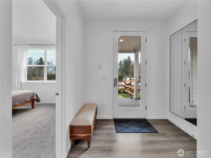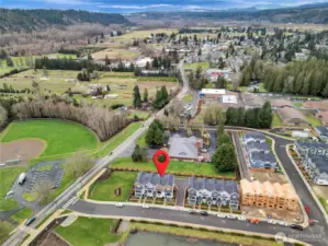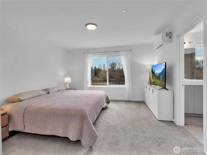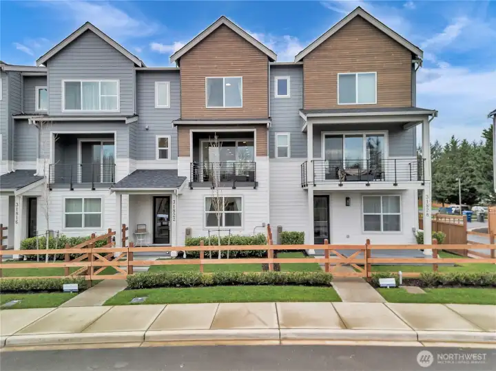 Introducing the Hazel Townhome by MainVue at Tolt River Terrace—an impressive tri-level home featuring 4 bedrooms, 3.5 baths, and a 2-car garage.Upon entering, you’ll find a spacious foyer and a private office with 9’ ceilings. The main level boasts a gourmet kitchen with 3 cm quartz countertops, European cabinetry, and stainless steel KitchenAid appliances. Oversized sliding glass doors lead to a covered deck overlooking the pond, perfect for outdoor relaxation. The open space design integrates the living room, kitchen, and dining area for comfortable living and entertaining.Enjoy mountain views and a lifestyle that connects you to nature while being conveniently located near Tolt-MacDonald Park, scenic trails, two rivers, and a sandy beach—Remlinger Farms is just 3 minutes away. This home offers an ideal balance of safety, nature, and tranquility, with easy access to key locations like Redmond, Bellevue, Issaquah, Sammamish, Woodinville, Microsoft, and Google within 15-20 minutes.Upstairs, the primary suite features a walk-in closet and an ensuite bathroom with a semi-frameless walk-in shower and dual quartz vanities.This is a rare opportunity to own nearly new construction from 2024 without a completion wait. Don’t miss out—new appliances and furniture are included in the price!