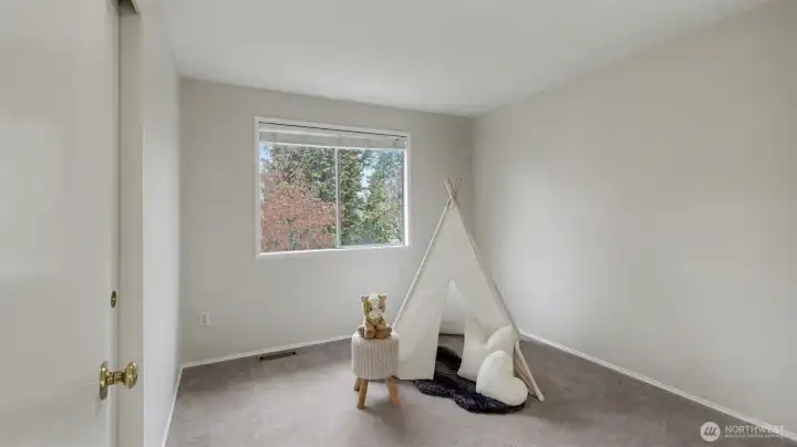 Step into the bright, welcoming two-story entryway. The spacious formal living and dining rooms offer plenty of privacy and abundant natural light. Toward the back of the home, a generous kitchen with an eating area flows seamlessly into a warm, inviting family room complete with a fireplace. Both spaces look out onto the serene, private backyard. A conveniently located laundry room and half bath sit just off the main hallway. Upstairs, you’ll find four comfortably sized bedrooms. The three guest rooms feature large closets, while the primary suite offers its own private bath. This home sits just one block from the community’s large park and playground, and directly across from the Lake Youngs trail entrance—perfect for walking or mountain biking. Restaurants, shopping, and easy highway access are all close by, adding to the everyday convenience of this great location.