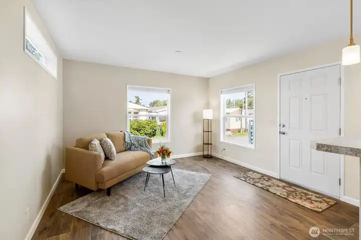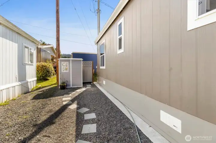 Less than 3-year-old 1BD/1BA home in the desirable 55+ South End Mobile Estates, just minutes from Fairhaven! Lightly lived-in with a smart open layout, two porches, quality finishes, custom blinds, and low-maintenance living with low bills. Built to last, installed on a concrete slab with concrete panel skirting, fresh gravel, a brand-new shed, and 2 parking spaces. Many furnishings and essentials can stay, making it truly move-in ready. A quiet and serene, owner-occupied community near trails, parks, dining, and shopping. $800/mo space rent includes water/sewer and community center. Financing options available! Indoor cats and dogs welcome (2 pets up to 25 lbs). Affordable, modern, comfortable, and perfectly located—don’t miss this one!