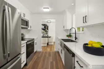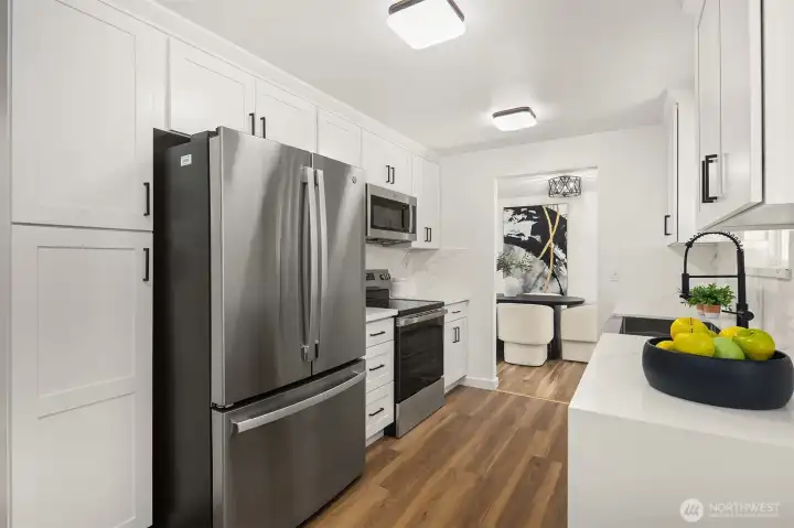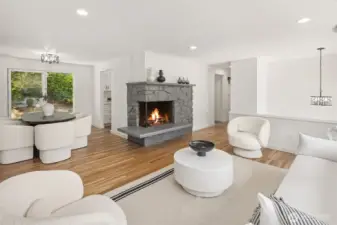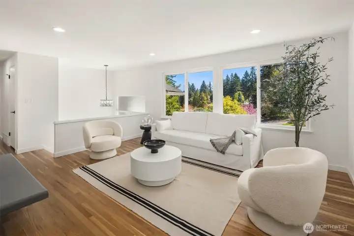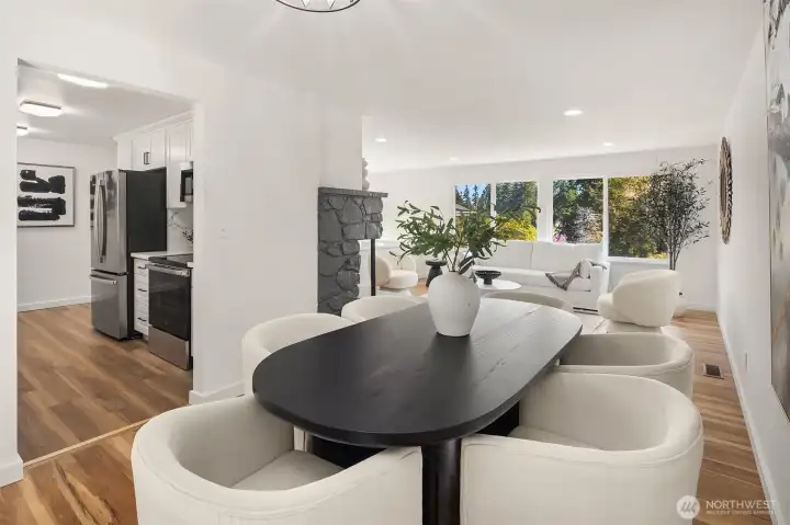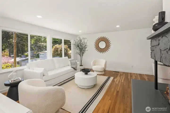 Tucked away on a quiet cul-de-sac at the vibrant border of Seattle & Shoreline, this beautifully renovated residence offers a true turn-key living. Step inside to a light-filled interior where every detail has been meticulously curated. Brand new kitchen w/timeless white shaker cabinetry, quartz countertops, farmhouse sink & SS appliances. All bathrooms are tastefully remodeled w/designer finishes. Sunlit living room w/fireplace, 3 spacious bedrooms & recreational room on lower level w/2nd fireplace. Additional recent upgrades include, newly refinished hardwood floors, new LVP flooring, new interior & exterior paint, gas furnace (2024), newer roof (2022). Sought-after Shoreline SD. Minutes away from LR station & highways. Close to all amenities. Pre-inspected!
