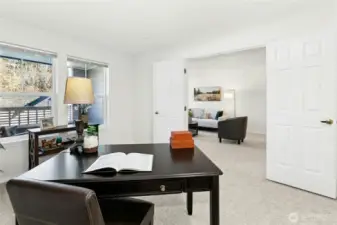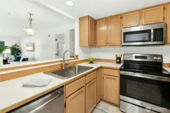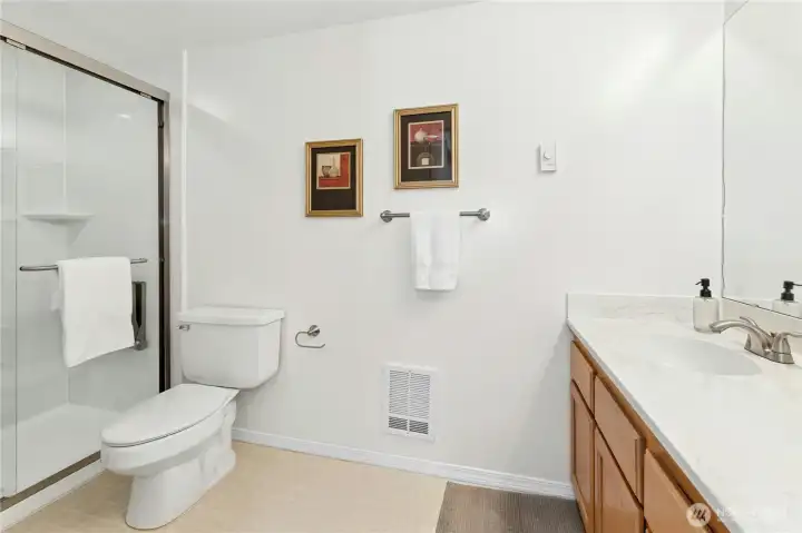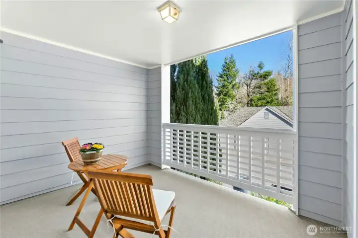 Welcome to Providence Point, a welcoming 55+ neighborhood designed for comfort and connection. This 2 bedroom home with 1 ¾ baths has been refreshed with new paint and carpet throughout. The entryway includes a coat closet, an essential feature for PNW life. The kitchen is to the right as you enter and offers stainless steel appliances, a new sink, and abundant storage in an easy layout. The primary bedroom features an ensuite with an updated low barrier shower, a spacious walk in closet, a linen closet, and its own private deck. The living room is filled with Southern light and provides generous wall space for art and photographs. A long deck extends from the living room and creates a peaceful spot to enjoy morning coffee. A second bedroom that also works well as a den connects to the living room. A closet for a stacked washer and dryer and a full bath complete the layout. The unit includes a separate storage closet down the hall and an end unit garage with extra space. Providence Point is known for its vibrant community. Residents enjoy clubs and interest groups that keep the mind active. Miles of walking trails, a pickleball court, an indoor pool (reno complete April 2026), and an optional gym membership offer many ways to stay in great shape. The pea patch and resident run library provide quiet places to reflect and connect. Located just off Lake Sammamish and between Issaquah and Sammamish, placing you a short drive from restaurants, shopping, and access to I 90.