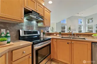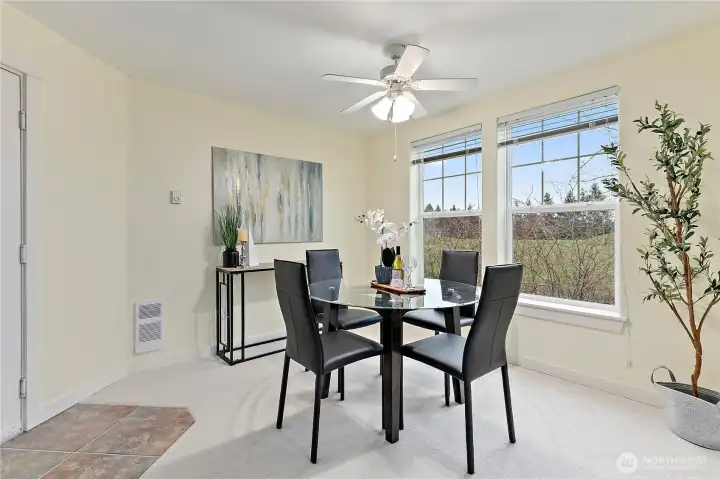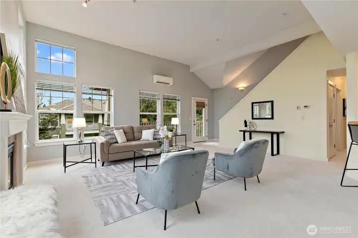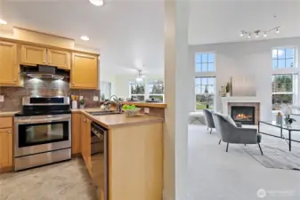 Bright and inviting, this top-floor end unit in Compass Pointe offers comfort, space, and convenience in a well-designed layout. Featuring three bedrooms, 2.5 baths, and a one-car garage, the home welcomes you with an open great room that seamlessly connects the living, dining, and kitchen areas. New carpet and a cozy gas fireplace enhance the warm, airy feel, while large windows fill the space with natural light. The generous balcony provides additional living space for enjoying fresh air and outdoor views year-round. The primary suite includes a walk-in closet and private bath, while two additional bedrooms provide flexibility for work, hobbies, or guests. Dual-zone heating and air conditioning ensure year-round comfort. Compass Pointe offers a community with no rental cap. Ideally located near Microsoft, Starlink, and SpaceX, with easy access to shopping, dining, parks, golf, and nearby trails, this home combines low-maintenance living with a vibrant, convenient location. Pre-inspected for added peace of mind.