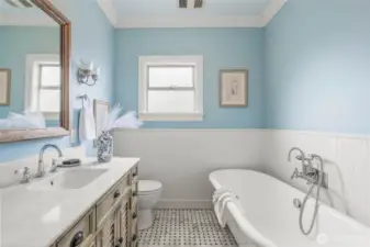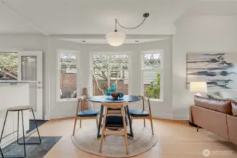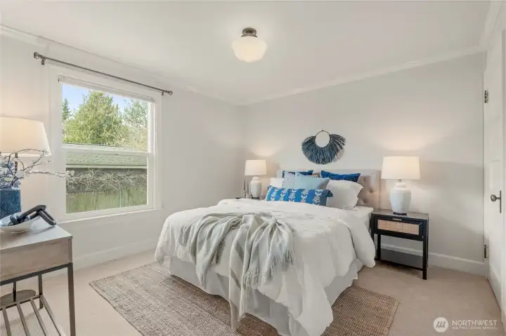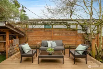 Beautiful Ballard history meets turn-key modern updates in this classic 1900 home. This 3-bedroom, 1.75-bath home has open living space, a fenced private yard, and many updates: new roof (2025), fully lined sewer (2025), seismic retrofit (2017), and EV charging. The spacious kitchen has excellent flow to the dining and living space, with updated appliances and French doors opening directly to a private deck. The living room features vaulted ceilings, abundant southern light, and a cozy wood-burning stove. Main level primary has a remodeled bath with marble counters and a luxurious clawfoot soaking tub. Upstairs, a third bedroom/loft works beautifully as a home office, guest space, or flexible bonus room. Indoors flow to outdoors seamlessly in this home, with a welcoming front porch, big backyard great for gatherings, pets, or play, and southwest-facing raised vegetable beds. The dry basement offers laundry, storage, and workshop space with excellent functionality. A detached one-car garage plus curbside EV charging provide ample parking and ADU possibilities. Located on a quiet, friendly street close to everything and just blocks from West Woodland Elementary. Walk to Mainstay Provisions, Tin Hat, and Bambino, or cruise uphill to Phinney Ridge favorites like Grillbird and Ben's Bread. Perfectly situated between Ballard, Greenwood, and Phinney Ridge with easy commute to Downtown or South Lake Union.