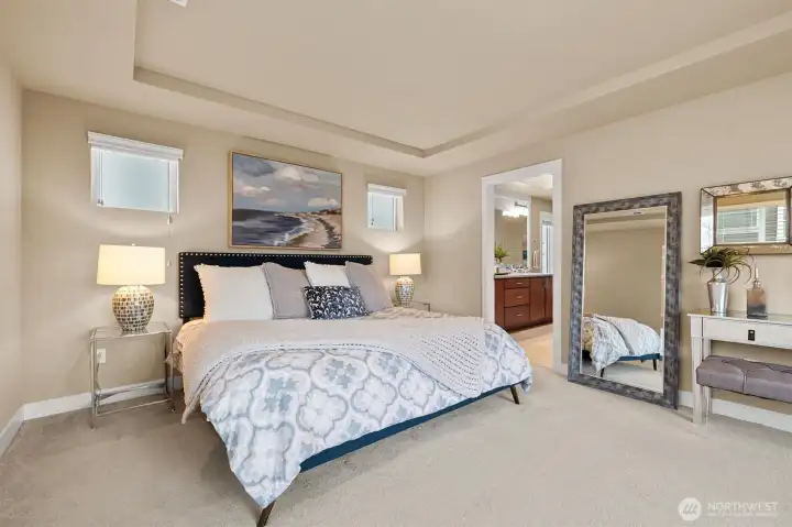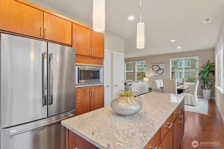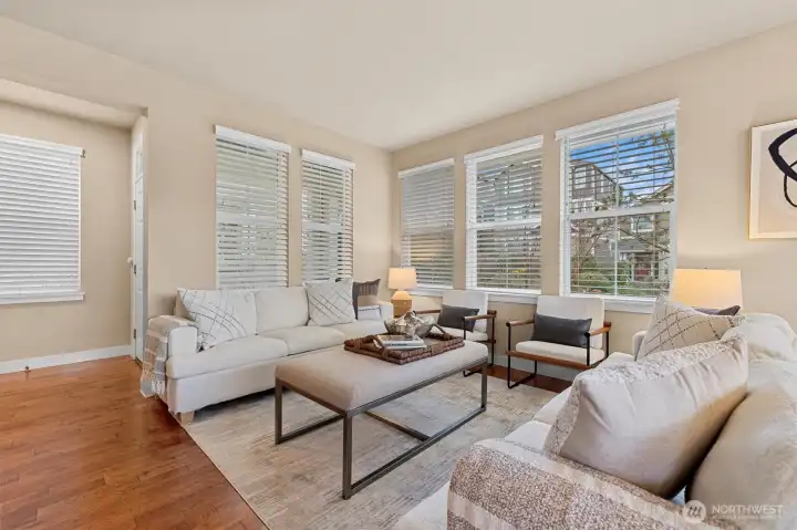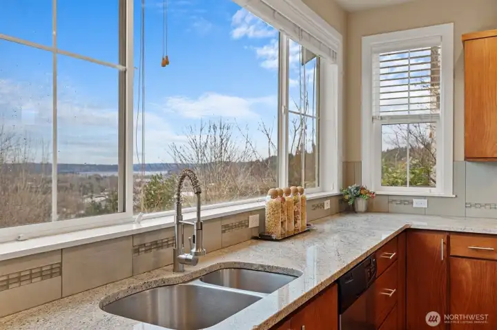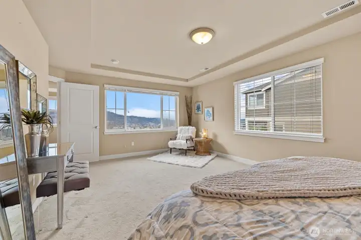 Welcome Home! Located on the Western Ridge of West Highlands Park and adjacent to walking trail is the VIEW home you've waited for! Located on the Greenbelt with no homes to the West! Enjoy Unparalleled views of Lake Sammamish, Olympic mountains, and downtown skyline from main and upper levels! Main Floor Entry opens to Full hardwoods, with great room concept opening to Full Granite Chef's Kitchen featuring stainless appliances. Entertain on your view deck located off kitchen. Upper Level features Primary Bed/Bathroom with full Soaking Tub and separate shower. 3 bedrooms and Laundry together on upper floor. Lower level features Family room, Bedroom and 3rd Full Bath. One of few homes with Fenced, level back yard. **Central AC!!** Don't miss the Best location West Highlands has to offer!