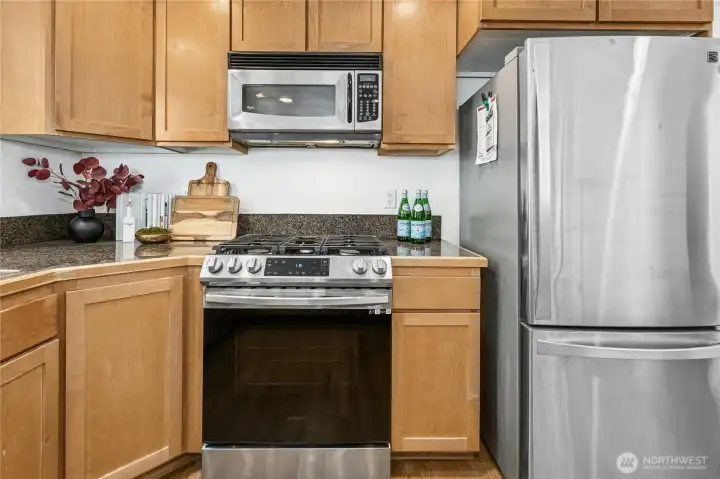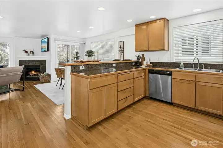 Charming Craftsman-style townhome nestled on a quaint, quiet street in sought-after North Green Lake. Home has been completely painted inside and out and has brand-new carpet throughout, this home is truly move-in ready and filled with warmth and character. Thoughtful Craftsman details blend beautifully with modern comforts, including a large chef's kitchen with granite tile, tons of storage, a wonderful breakfast bar, hardwood floors, maple wood accents, skylights, stainless steel appliances, and a cozy fireplace that anchors the living space. The inviting, light & bright dining area opens to a cute private deck perfect for morning coffee. The well-designed floor plan offers 3 bedrooms and 2.5 baths (the downstairs bedroom could be a perfect office or flex room) plus the convenience of a one-car garage and additional storage makes this an excellent choice. Enjoy a fenced private yard that provides an outdoor retreat or little garden area. Enjoy an unbeatable location just minutes to Green Lake, nearby parks, downtown Seattle, shopping, dining, and major commuter routes, all while coming home to a serene urban setting. NO HOA!! This is a special opportunity to enjoy timeless charm, comfort, and an exceptional North Seattle lifestyle in the heart of a wonderful community. Home is fully Pre-Inspected & has a sewer scope This is the one you have been waiting for!