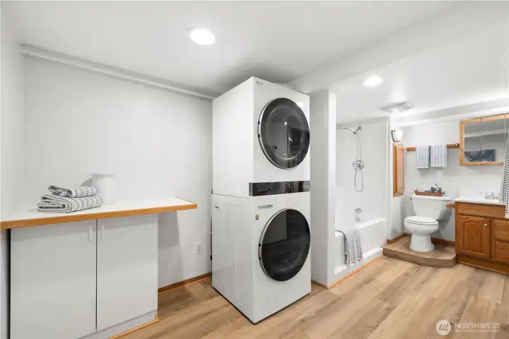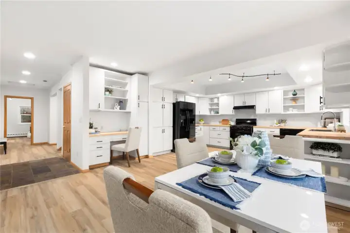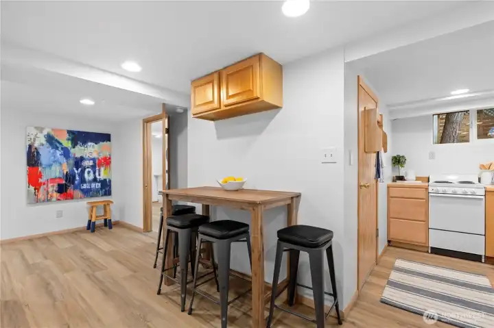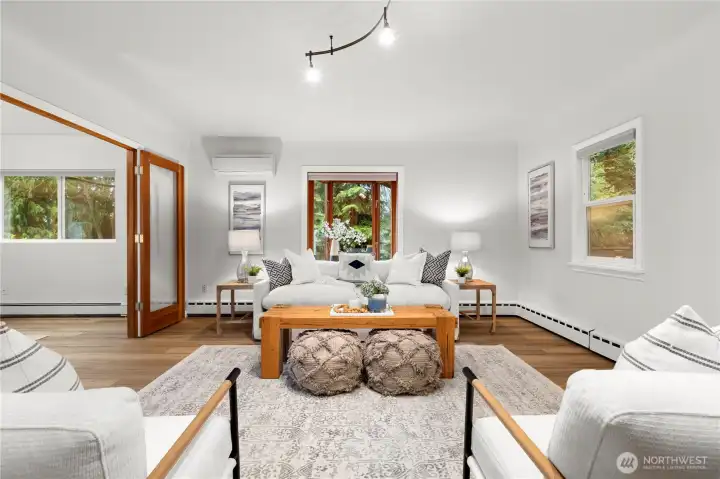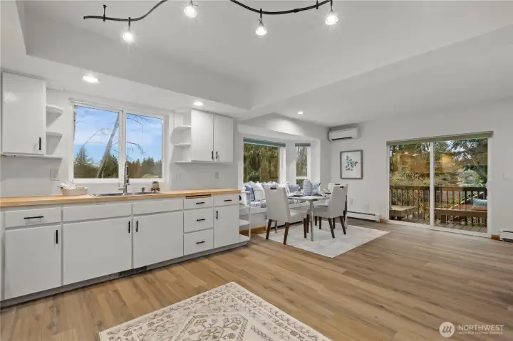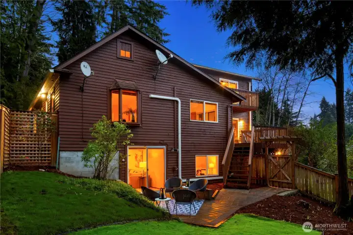 On a quiet cul-de-sac in Juanita, this property is an incredible opportunity. Currently, it has a main house with a fully permitted ADU apartment with a separate address. The 15,000 square foot lot could be developed to support multiple units and middle housing options. We have architectural drawings to show some options available on request. The current home blends 1920s character with a full modern overhaul. Nearly 3,000 sq ft of living space across three levels gives you real flexibility: open main-floor living with 3 bedrooms and 2.5 baths and a daylight lower level with its own full kitchen, large bedroom, bath, laundry, and separate entrance, parking, fenced yard and patio—ideal for multi-gen living, guests, or rental income. Newer windows, roof, systems, and hot-water heating keep things efficient and comfortable, while large view-facing windows pull in natural light and peek-a-boo mountain vistas. Outside, the double-sized lot offers mature PNW trees, a lawn to play on, and room for gardening or summer gatherings. You’re minutes from Juanita Beach Park, neighborhood schools, buses, hospital and shopping, yet it is a unique private retreat tucked above the lake. Full home inspection and architectural drawings available on request.