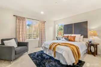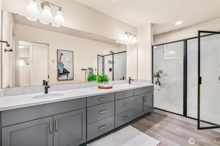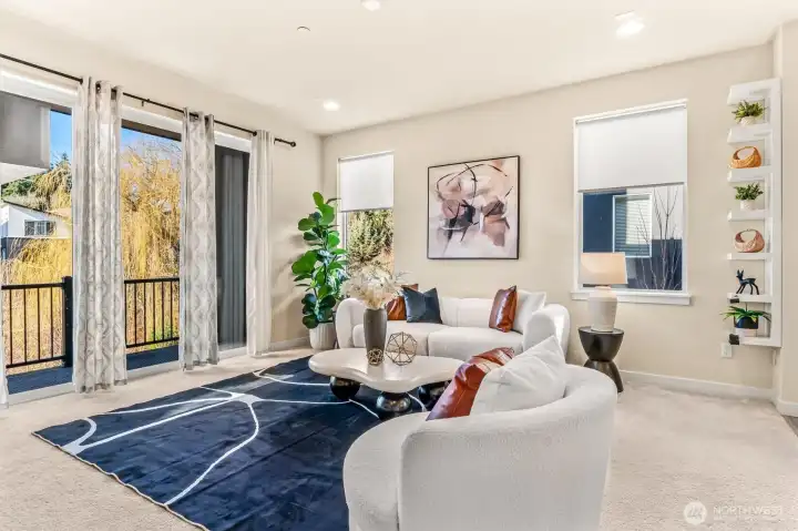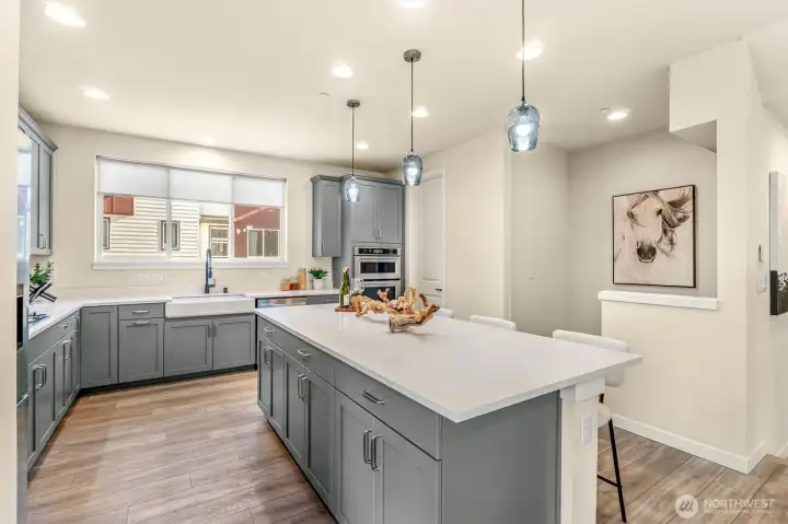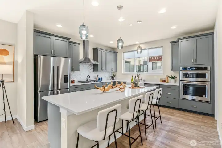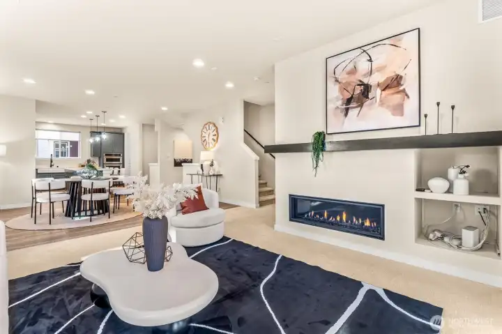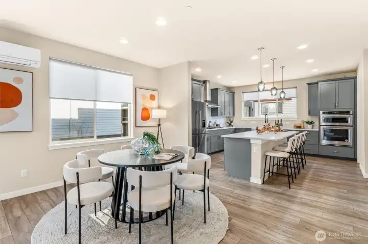 Don’t miss this stunning 4-bedroom, 3.25-bath townhome in sought-after Urbane Village II, right in the heart of Bothell. Spacious 2,249 sq ft, this light-filled East West facing home offers a highly functional layout with thoughtful upgrades throughout. The main level features an open-concept living and dining area, perfect for entertaining, with engineered hardwood floors, a cozy gas fireplace, and abundant natural light. The chef’s kitchen boasts beautiful sage green cabinetry, upgraded quartz counters, stainless steel appliances, an oversized island with ample storage. Step out to the covered deck ideal for year-round entertaining with privacy overseeing GREENBELT. A guest bedroom on the lower level includes an attached ¾ bath, making it perfect for visitors or a private home office. Upstairs, you’ll find two additional spacious bedrooms, a laundry area, and a luxurious primary suite featuring vaulted ceilings, a spa-inspired bath & a custom walk-in closet by California Closets. Highlights include custom desk/work area Ring doorbell, Wi-Fi–enabled garage door opener & front door lock, plus an energy-efficient Mini split A/C system. In ceiling surround sound wiring. EV car charger. POE for wifi on each level. 2-car garage & extra storage. Mins from Bothell Landing, UW Bothell, parks, dining, & 405—perfect blend of modern living and unbeatable location. No rental cap. Top rated NSD schools Shelton View Elementary. Low Hoa. Fee simple townhome you own the land. Welcome Home.