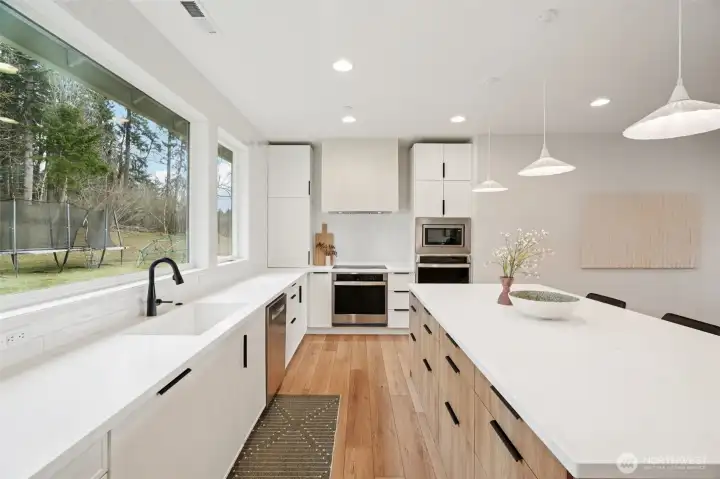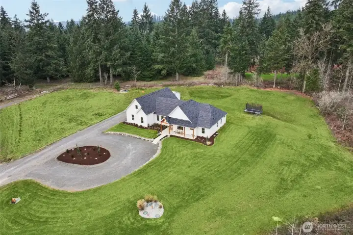 Stunning 2022 custom home offering 3,500 sq ft of thoughtfully designed living space with breathtaking territorial and Columbia River views. This 3-bedroom, 2.5-bath home features over 2,800 sq ft on the main level plus a 672 sq ft second story, creating an ideal layout for both everyday living and entertaining. The heart of the home is the open main living area, complemented by two spacious living rooms—one showcasing soaring vaulted ceilings and a cozy pellet stove. The chef’s kitchen is beautifully appointed with stainless steel appliances, wall oven with built-in microwave, cooktop with hood vent, tile backsplash, pantry, and a large eat-at island. The dining room includes a built-in coffee bar with abundant cabinetry for added storage and convenience. The primary suite is privately located on one side of the home and features a walk-in closet and a luxurious ensuite with soaking tub and walk-in shower. This wing also includes the laundry room and a bonus room currently used as a nursery, perfect for an office or flex space. The opposite side of the home offers two additional bedrooms and a full bathroom complete with a sauna. Upstairs, enjoy a large bonus/playroom plus a separate room ideal for an office, den, or home gym. Additional highlights include a central vacuum system, exceptional storage with numerous cabinets and closets, and covered front and back patios for year-round enjoyment. The landscaped yard features a sprinkler system, tool shed, and access to a peace