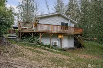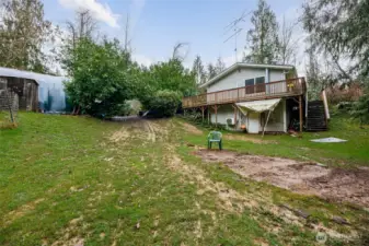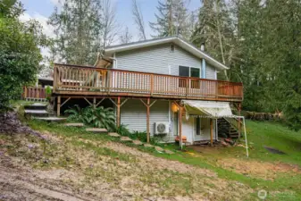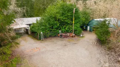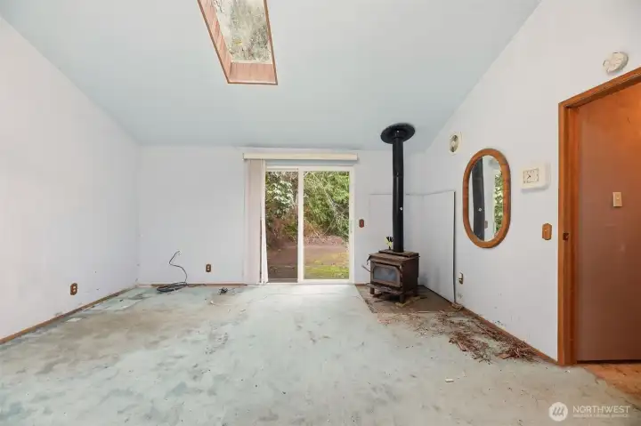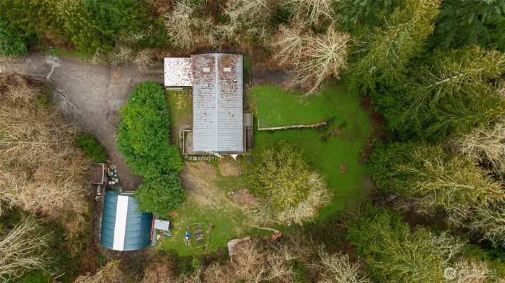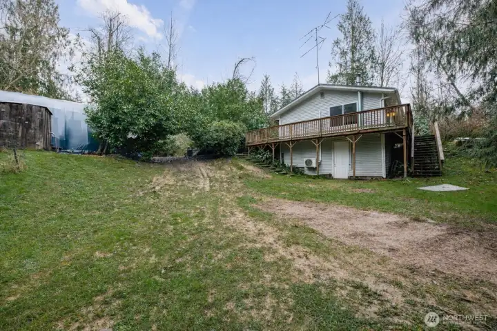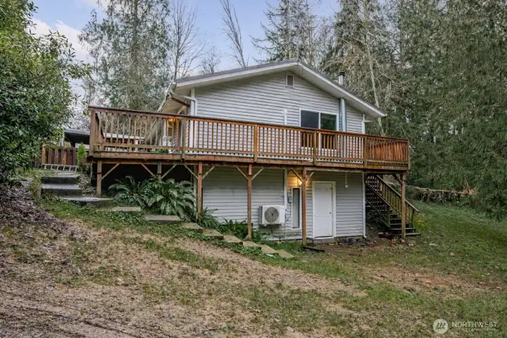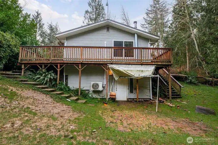 Daylight basement rambler offering a rare fixer opportunity with space, flexibility, and room to live how you want. Features include a lifetime metal roof, wrap-around deck, attached carport, and abundant parking for vehicles, equipment, and recreational toys. Mini-split heat pump provides efficient heating and cooling, complemented by wood-burning stoves on both levels. The finished daylight basement creates a flexible floor plan ideal for multi-use living, guest space, or possible ADU. Bonus room features vaulted ceilings and skylights, bringing in natural light and added space. Outdoor amenities include covered wood storage, fully stocked and ready for winter, plus a large tarp-covered metal hoop frame structure with car lift, providing covered workspace for hobbies, projects, or storage (non-permanent structure). Expansive setting allows room for animals, gardening, and outdoor living. Don't miss the built-in/walk-in safe. No HOA. Enjoy a peaceful, rural feel with starry nights, while remaining close to shopping, dining, and a reasonable commute. Bring your tools, your vision, and make it your own. Cash/Rehab only.