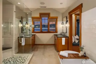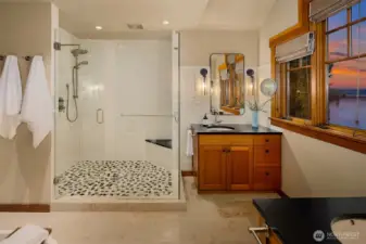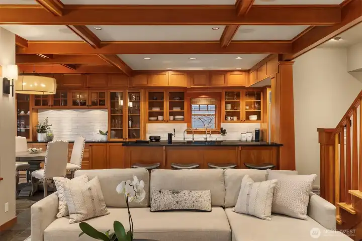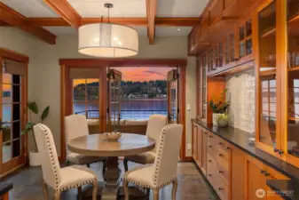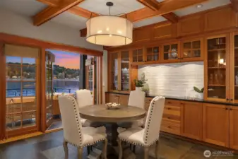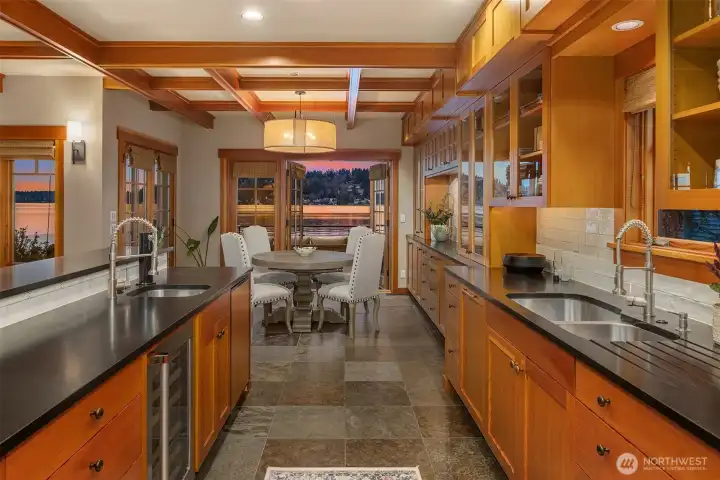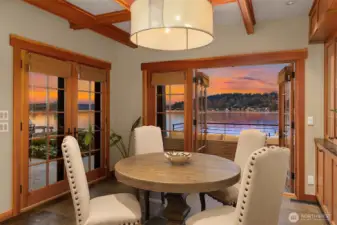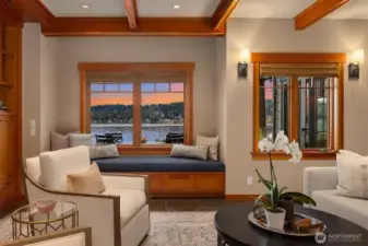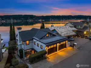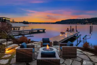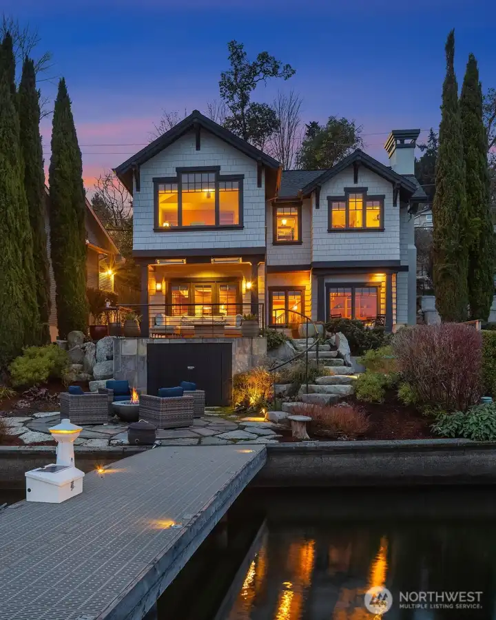 Set along a prized stretch of west-facing Lake Washington shoreline, this custom waterfront home offers a rare balance of warmth, craftsmanship, and effortless lake living. Designed by architect Todd Soli and thoughtfully refreshed, the residence pairs timeless Northwest materials with a refined, modern sensibility—scaled for those seeking luxury without excess and an easy lock-and-go lifestyle. Expansive windows frame golden sunsets and uninterrupted water views, while French doors extend the living spaces to heated outdoor patios designed for year-round enjoyment. At the center of the home, a chef’s kitchen with professional Viking appliances and radiant heated floors flows naturally outdoors, creating an inviting backdrop for gatherings or quiet evenings as the lake becomes part of daily life. Upstairs, the primary suite captures sweeping views, vaulted ceilings, and a fireplace, complemented by an updated bath with heated floors and elevated finishes. Custom fir cabinetry, rich millwork, and stone fireplaces reflect a level of detail and integrity throughout. A flexible second bedroom with built-ins offers space for guests, work, or creative pursuits. With 45 feet of no-bank frontage, a newer dock, and 8,000 lb boat lift, the property invites spontaneous boating, paddleboarding, and long summer days on the water. Ideally positioned near the Eastrail, with convenient access to Bellevue and Sea-Tac, this is a rare opportunity to experience Lake Washington living with ease