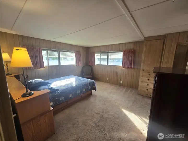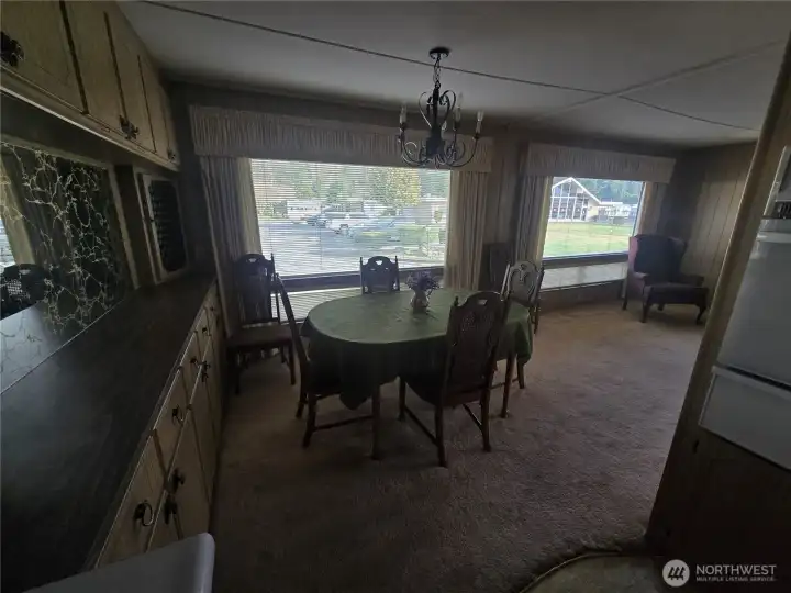 Leisure Manor 55+ gated community offers this well maintained 2 bedroom / 2 bath home with 1,440sqft. Spacious living room offers large windows for ample natural light year round. Dining room with built-in hutch, great for seasonal storage! Spacious kitchen with breakfast bar, lots of cabinets for storage, gas cooktop, cabinet oven, dishwasher and microwave. Living room off the kitchen with wet bar and open cabinets to display cherished items. 3/4 guest bath with large vanity just off entry and connects to front large front bedroom. Continue to the oversized primary with 2 large windows that allow for tons of natural light, 2 great size closets, with vanity counter and mirror and attached private full bath with double vanity. Utility room with stack washer/dryer combo and stand-up freezer that stays. Close walk to the wonderful club house that offers community gatherings, rec space, pool and so much more! Close additional guest parking if needed. 2 covered carports and decent yard space plus 3 additional storage sheds also stay!