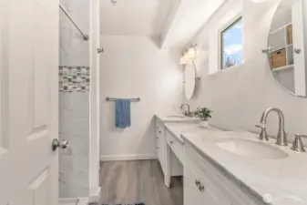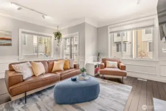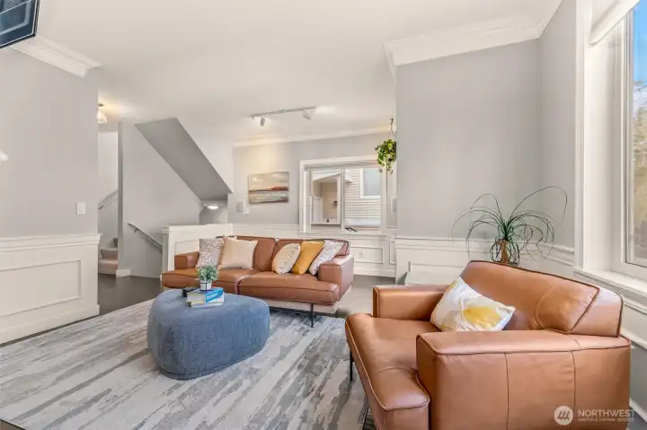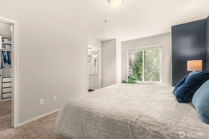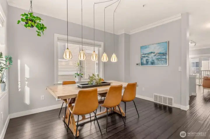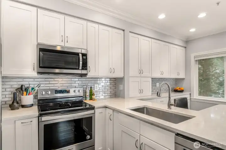 Bright, updated corner-unit townhouse in Mill Creek! The main level features a beautifully remodeled kitchen with quartz countertops, stainless-steel appliances, and impressive custom storage. Generous living, family, and dining spaces flow easily for everyday living or entertaining, plus a convenient half bath. Step out to your private balcony—perfect for BBQs or relaxing with a drink while overlooking peaceful green space. Upstairs, the spacious primary suite offers a walk-in closet and updated ensuite bath. Two additional bedrooms share a full guest bath and laundry. Enjoy year-round comfort with newly added A/C and a high-efficiency heat pump. Downstairs, the two-car garage includes an attached bonus room with a built-in Murphy bed—ideal for guests, a home office, media room, playroom, or hobby space. Prime location near Mill Creek Town Center, parks, trails, and easy access to I-5.