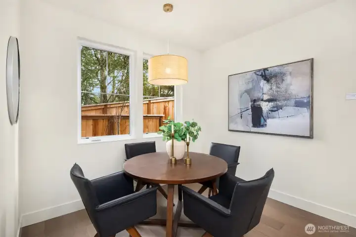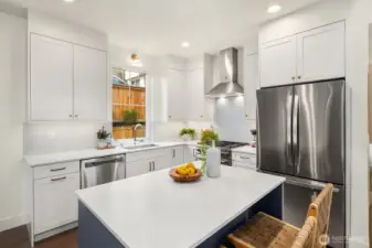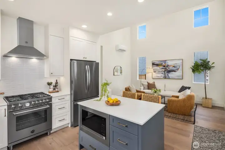 Exceptional new construction cottage by Gerry Homes East of Market, offering refined design & elevated finishes. A charming porch welcomes you to the gracious main level featuring bright & airy two-story living room, with open concept dining and kitchen with gas range and easy access to the yard from the main floor. Unique main floor bedroom and ¾ bath offers flexible floor plan. Upstairs showcases two bedrooms, each with en suite baths for ultimate privacy and convenience. Moments to downtown Kirkland, Lake Washington, & extensive dining.